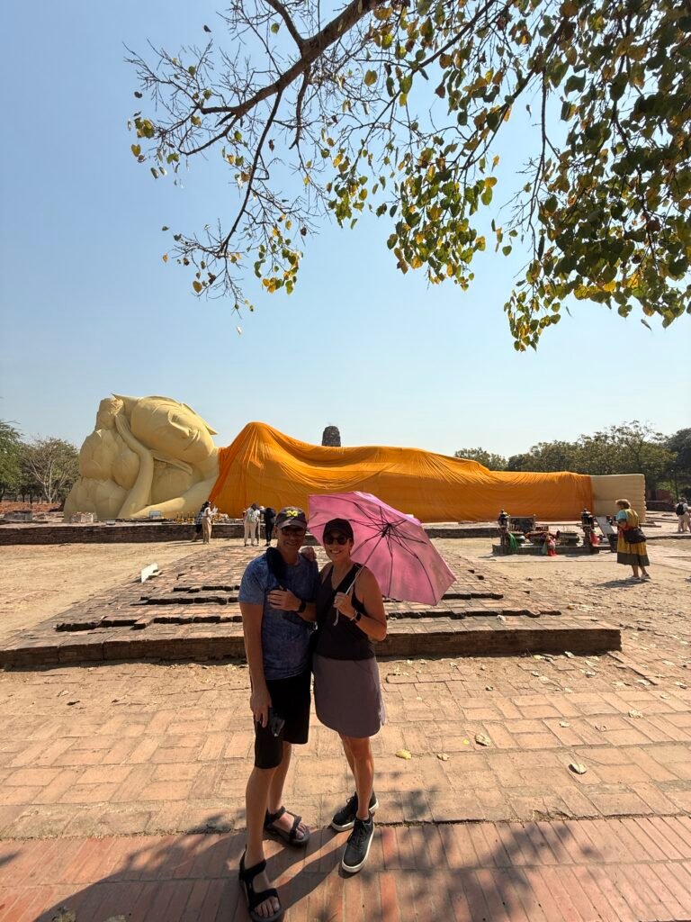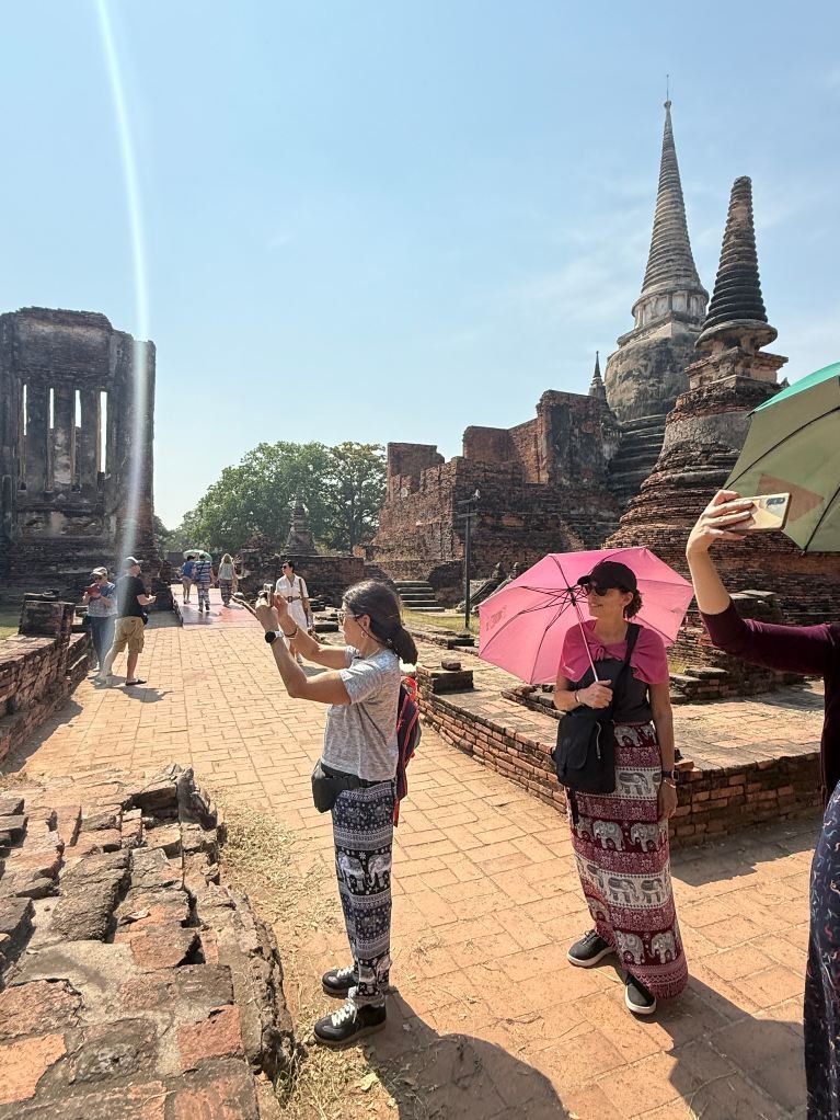 Ayutthaya is a historic city in Thailand, known for its impressive ruins and rich history. It was once the capital of the Kingdom of Ayutthaya, which flourished from the 14th to the 18th century before being destroyed by the Burmese in 1767. The city is located about 80 kilometers (50 miles) north of Bangkok and is now a UNESCO World Heritage Site. We went on a 4 hour bike tour of the city, it is a great way to get around and see everything.