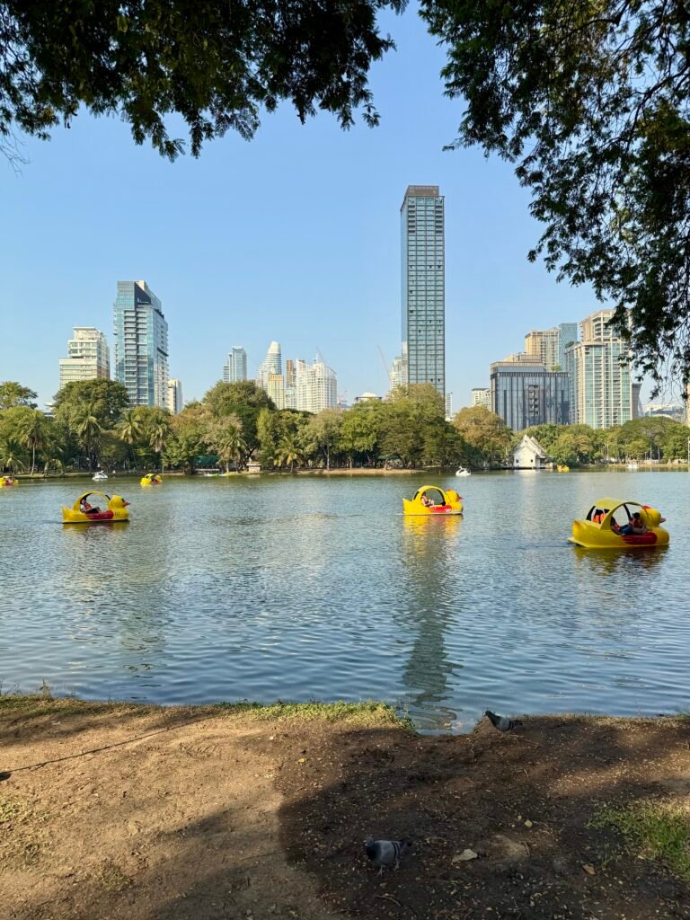 Lumpini Park is a large, peaceful green space located in the heart of Bangkok. It’s a serene escape from the city’s hustle and bustle, offering a variety of activities for both locals and tourists. The park spans 58 hectares and features walking paths, large open lawns, a scenic lake where you can rent paddle boats, and plenty of shaded areas for relaxation. There is no shortage of monitor lizards.