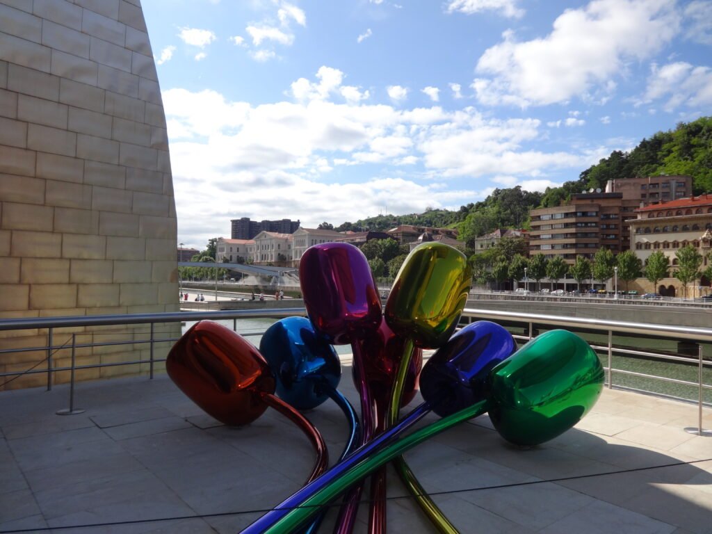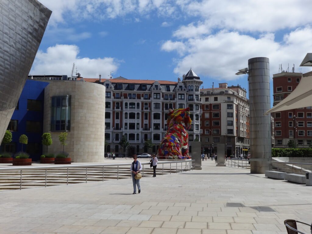 We flew into Bilbao from Madrid, to see the Guggenheim Museum. It looks great from the outside, the exhibits to me were so-so. We are glad we went since the structure is just outstanding.