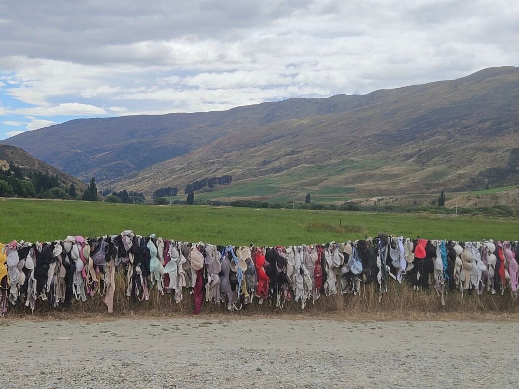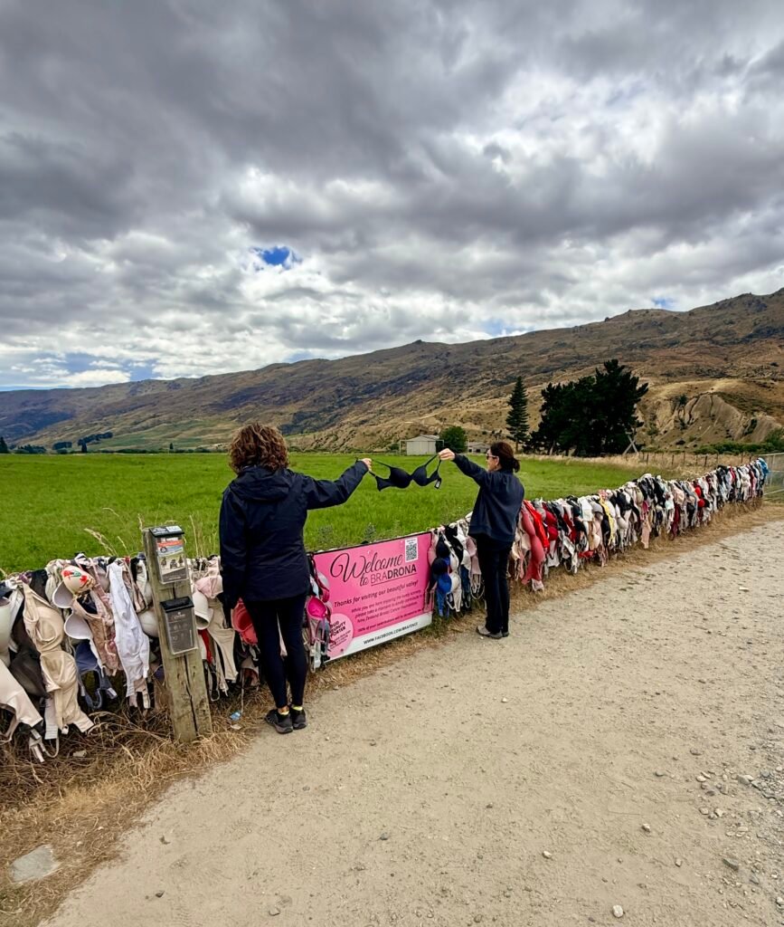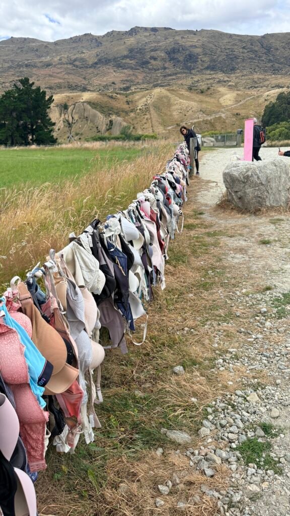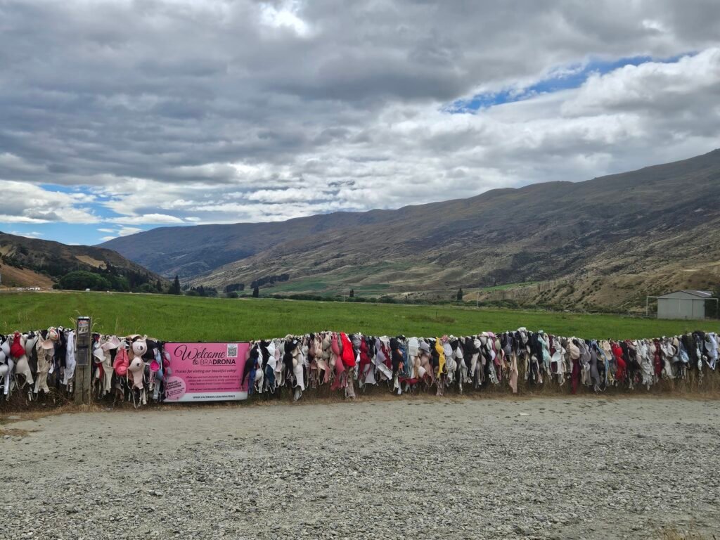 Just up the road from the hotel, is the Cardrona Bra Fence, a roadside stop known locally as “Bradrona.” A quick, oddball photo op with a donation box for breast cancer.