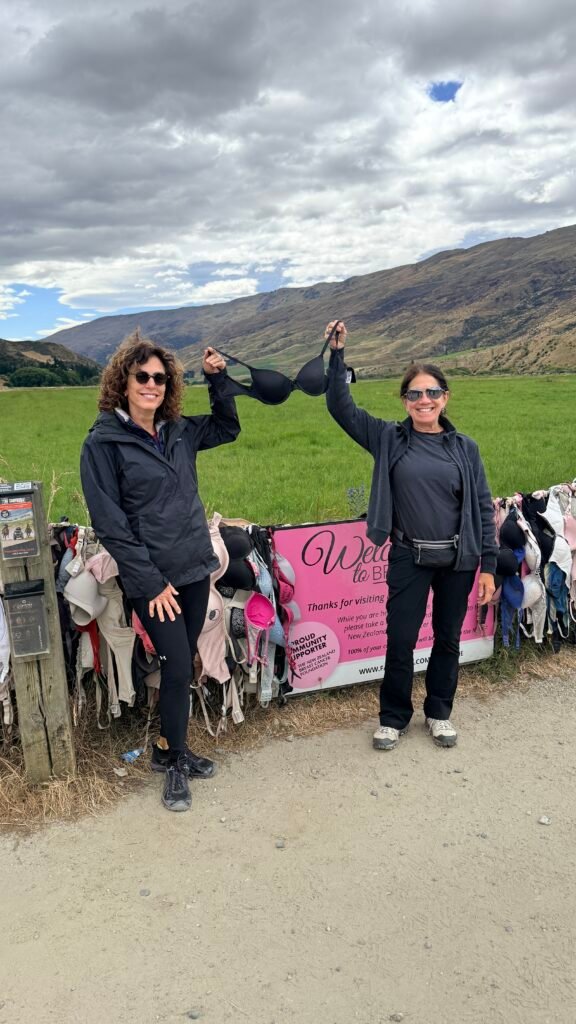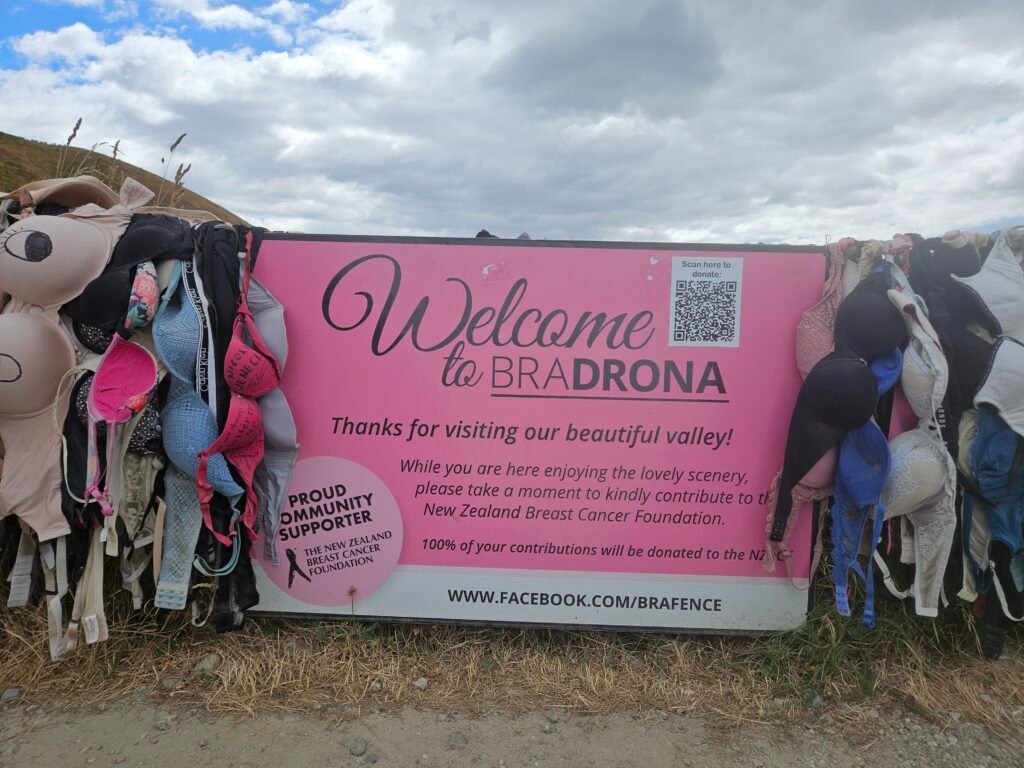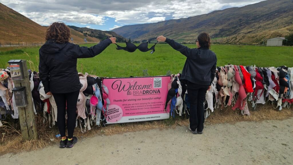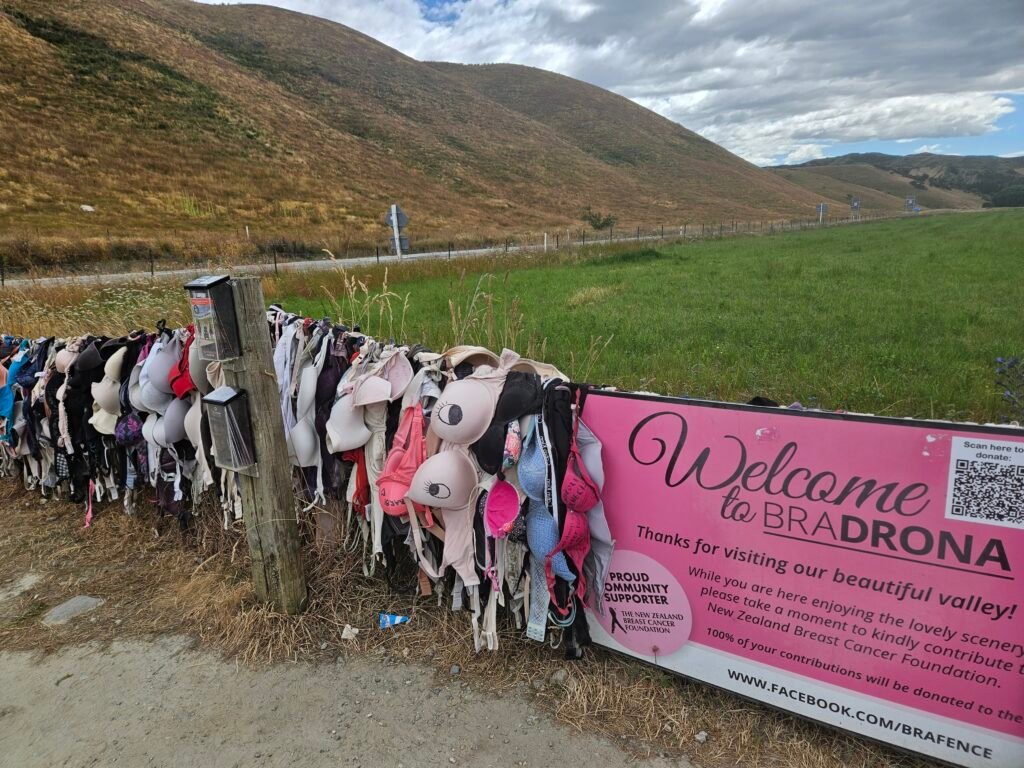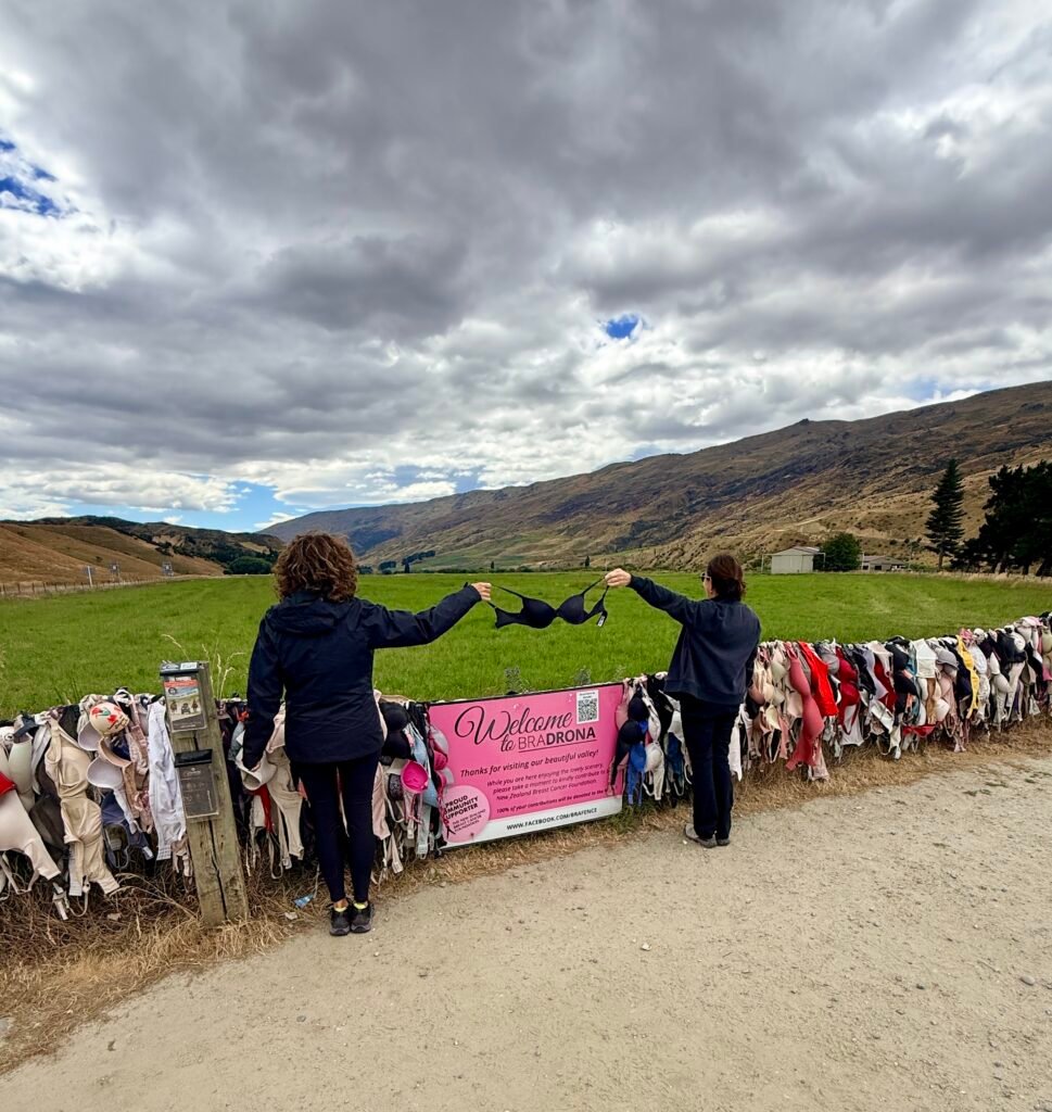 Just up the road from the hotel, is the Cardrona Bra Fence, a roadside stop known locally as “Bradrona.” A quick, oddball photo op with a donation box for breast cancer.