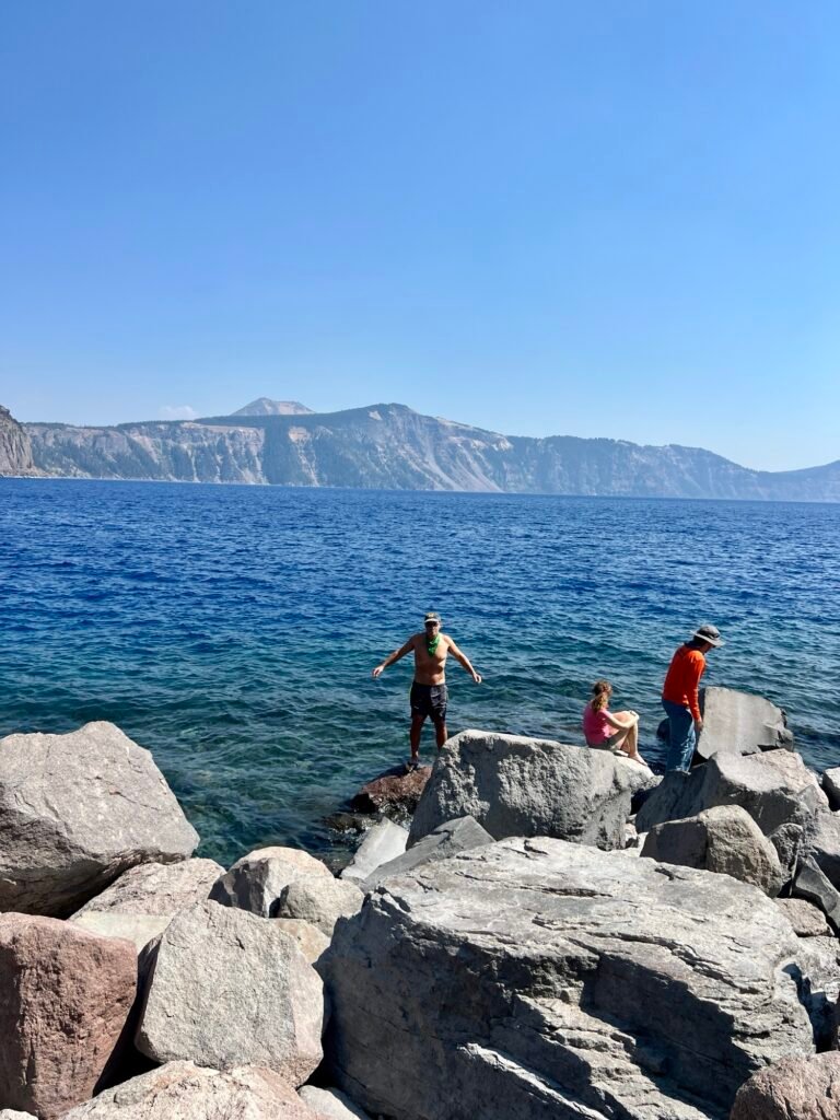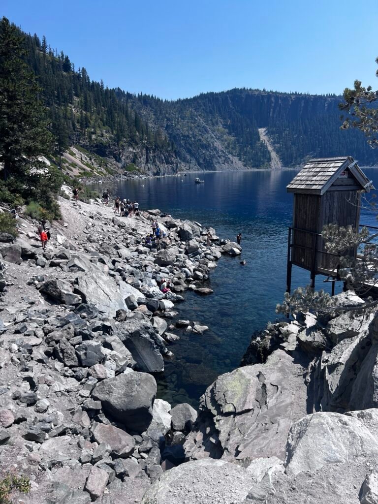 Cleetwood Cove Trail: The only trail that leads to the lake’s shore, where you can swim or take a boat tour. We did swim and take the boat tour. The hike is steep, 1 mile each way and not really easy. The boat ride was nice, but in my opinion too long. The tour was 2 hours and we would have been fine with 1 hour, but the lake is beautiful and the water a bit cold. The sun was so strong, we had to stay covered on the boat.