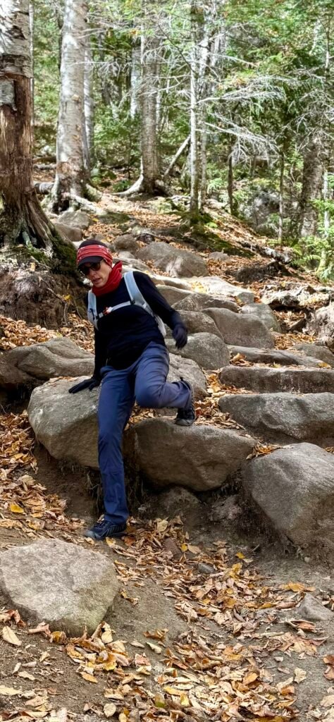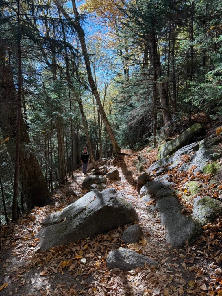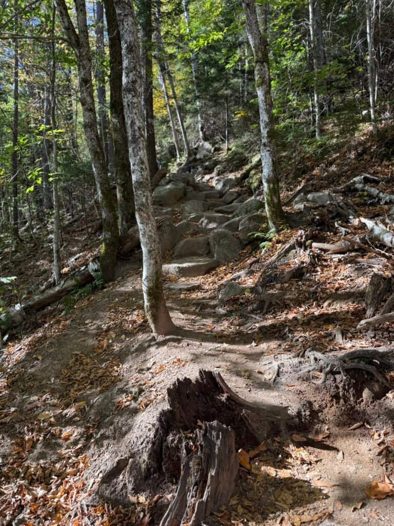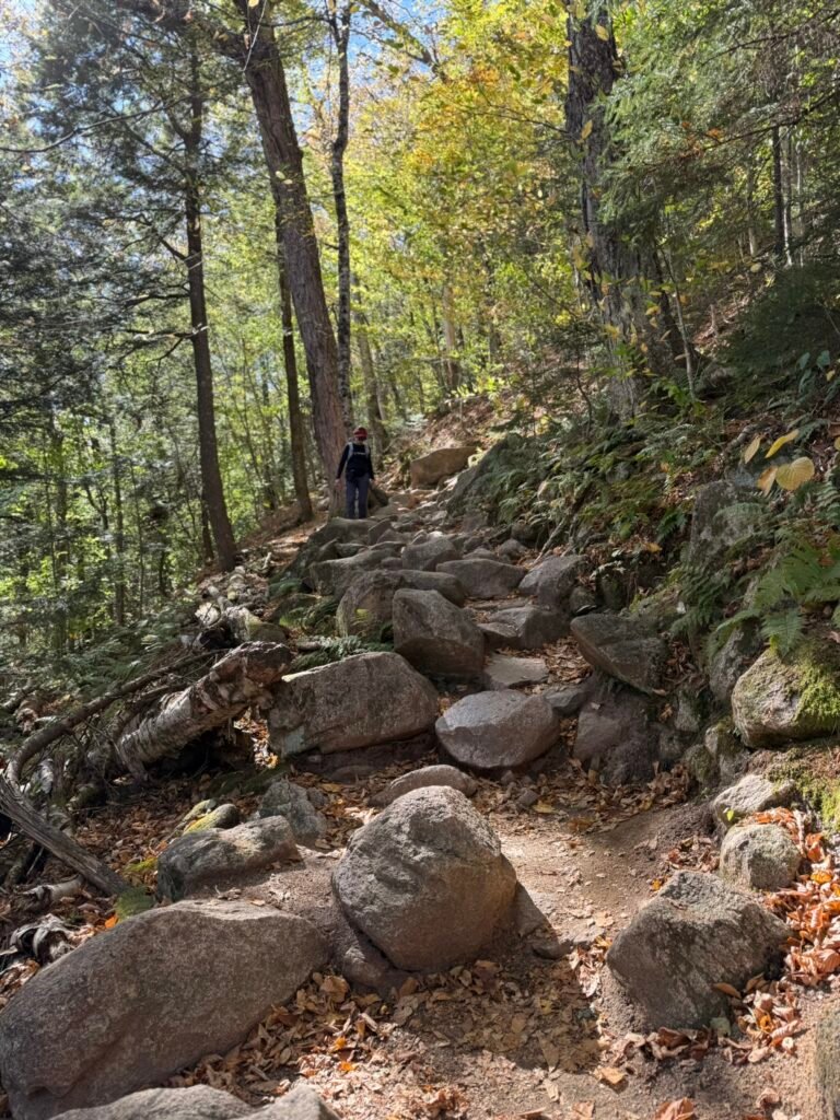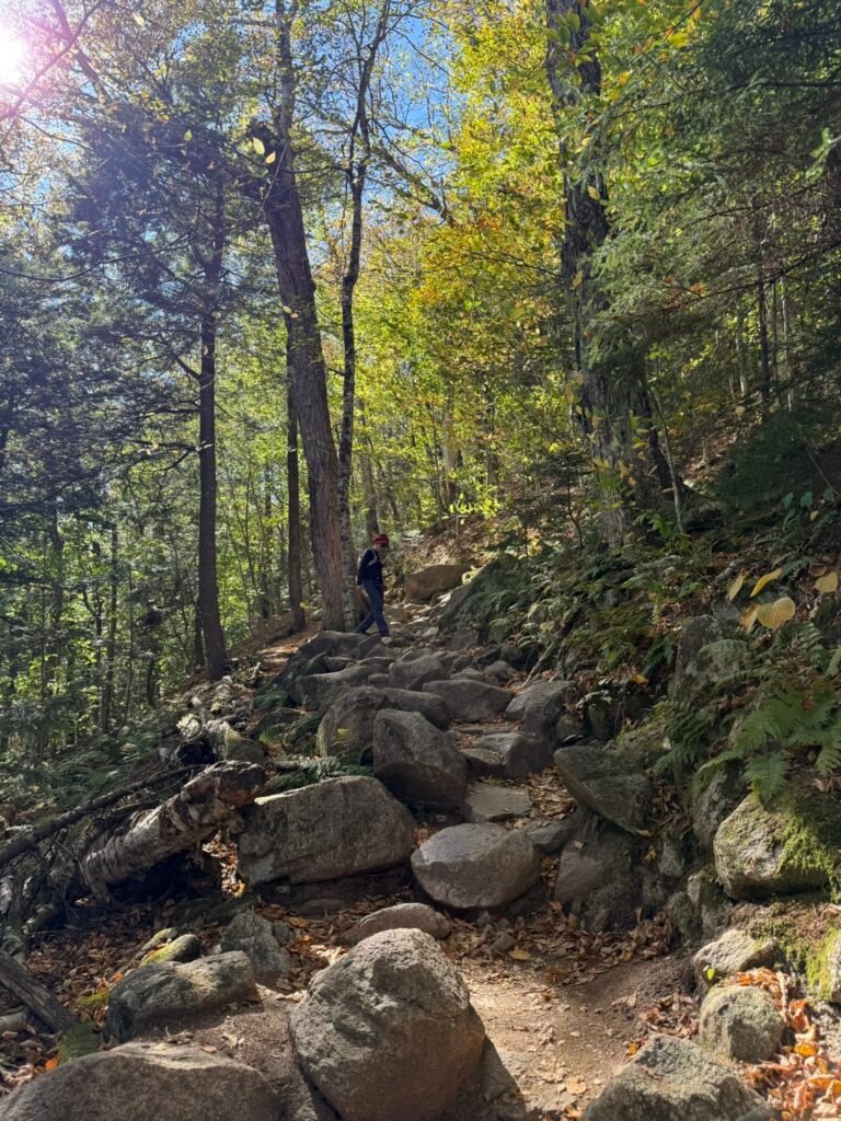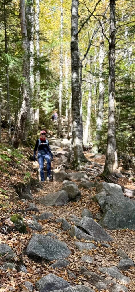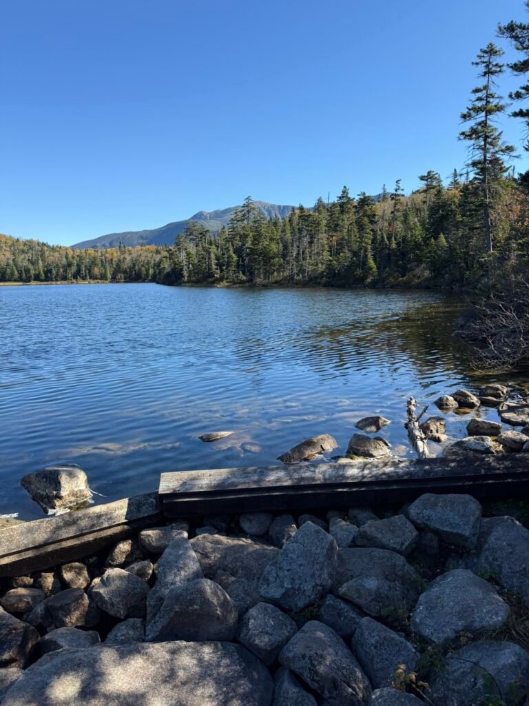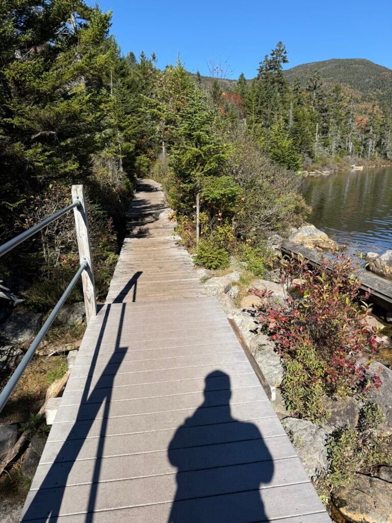 We wanted to hike the Franconia Ridge Loop (Lafayette–Lincoln Loop). It was a bit over 30 degrees when we woke up and just too cold to spend the day on a long hike, so we opted for the easier Lonesome lake trail The Ridge loop is one of the most famous hikes in New England with views along an exposed ridgeline.