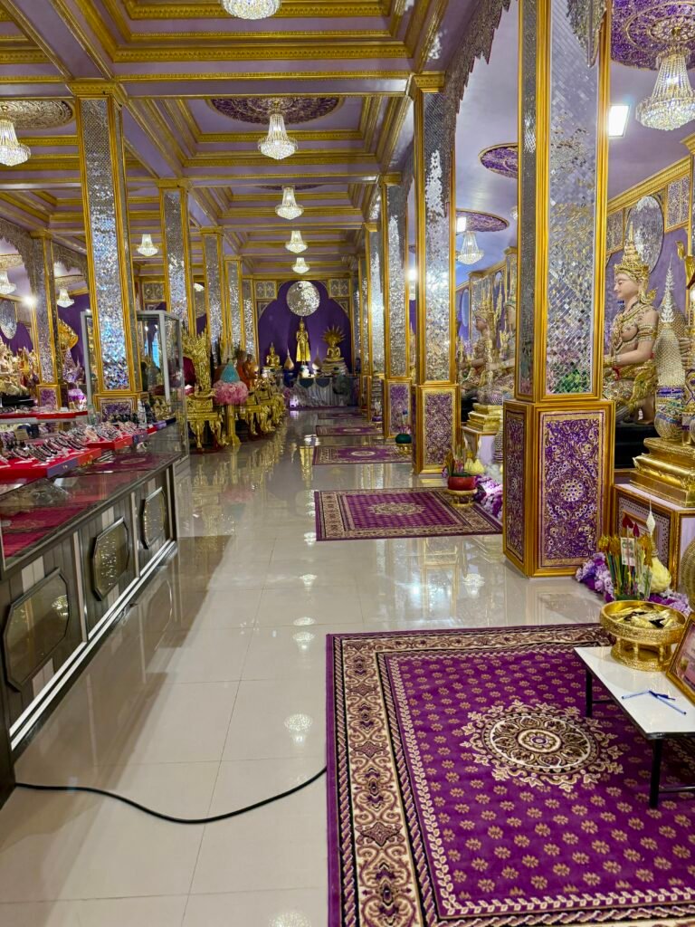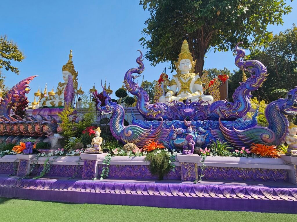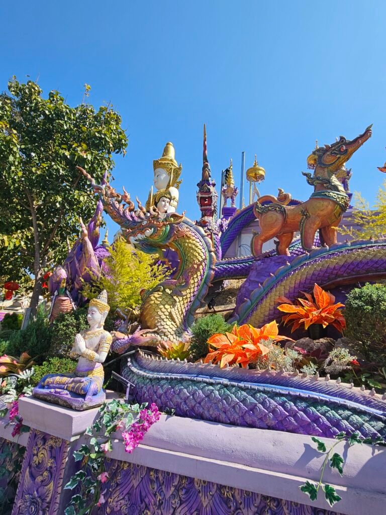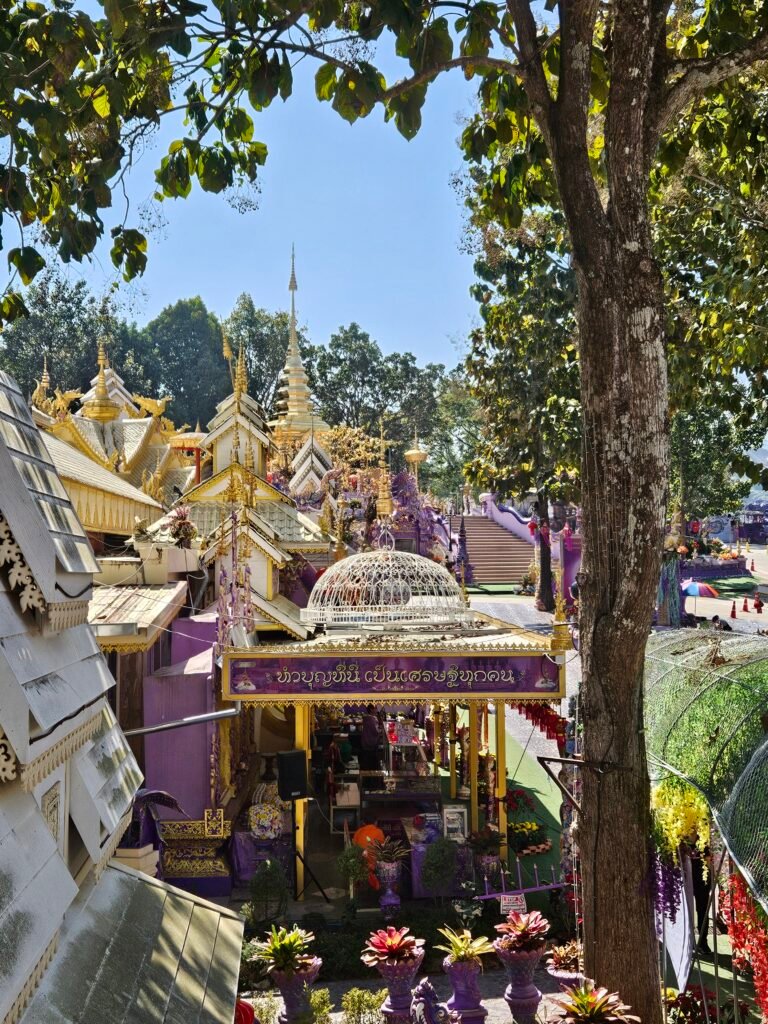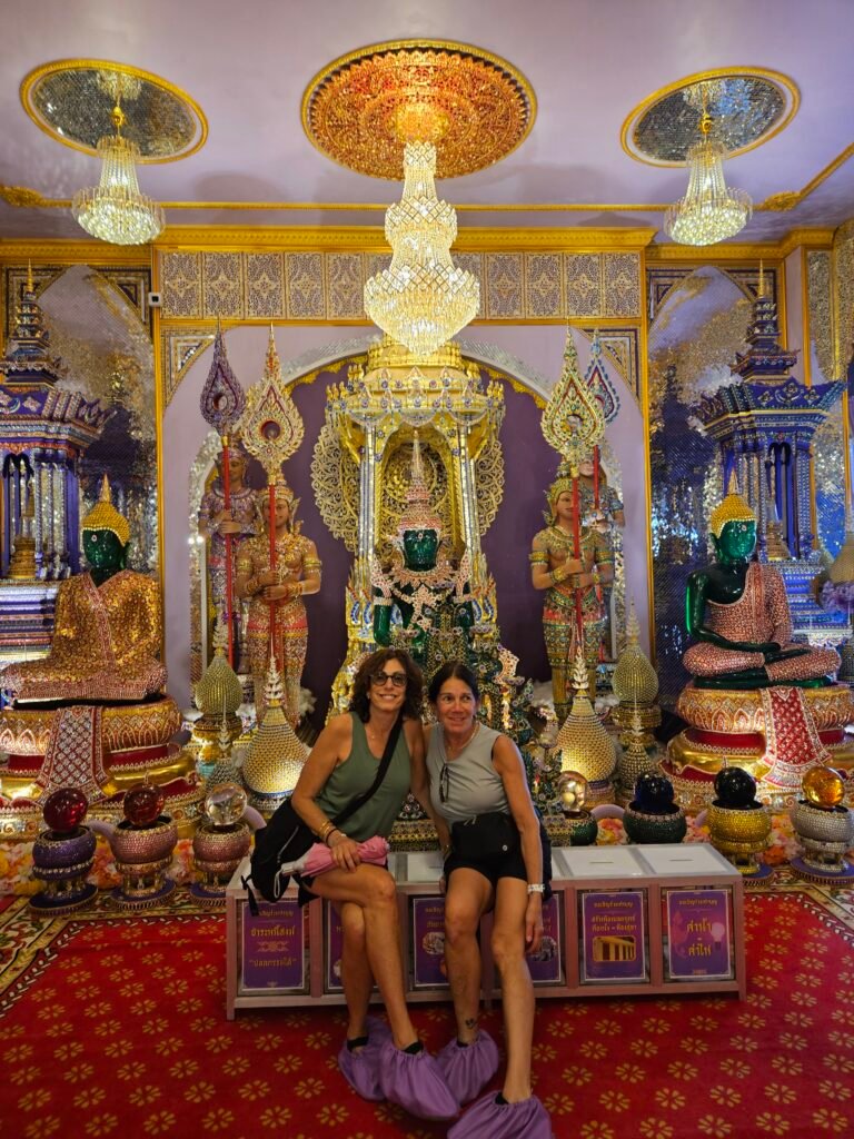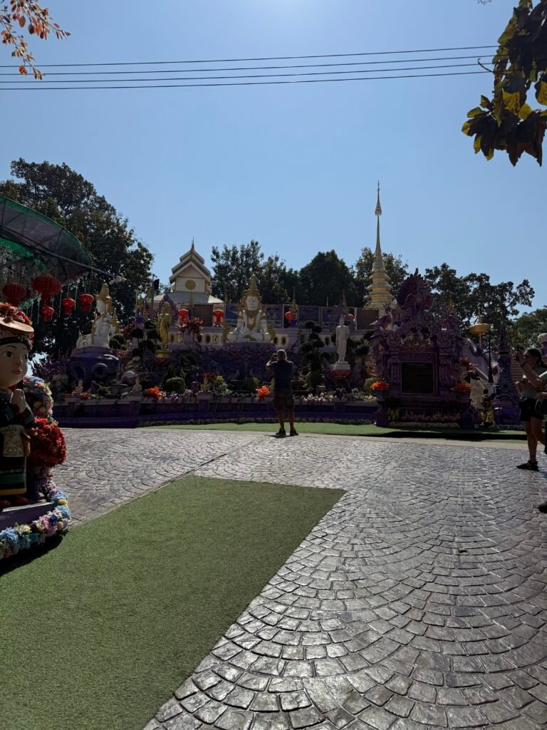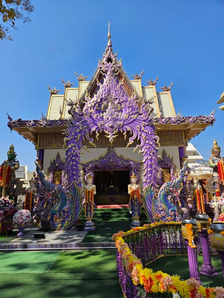The purple temple is beautfiul and the girls got blessed by a monk.