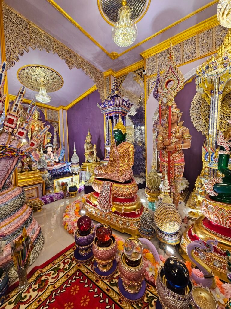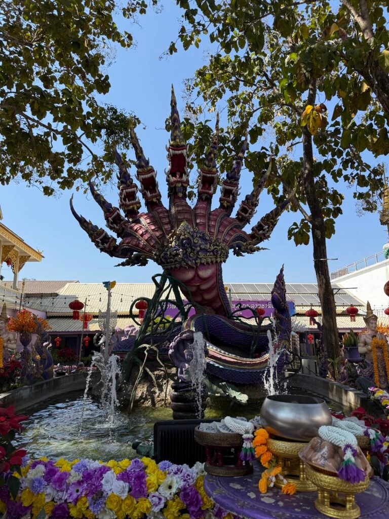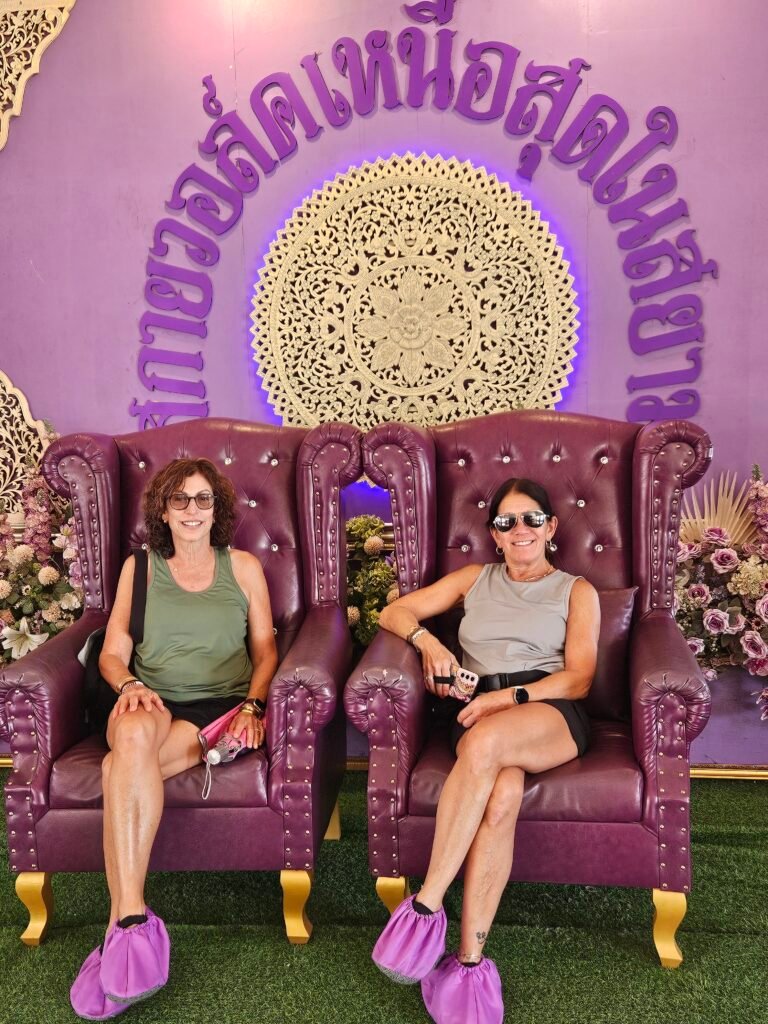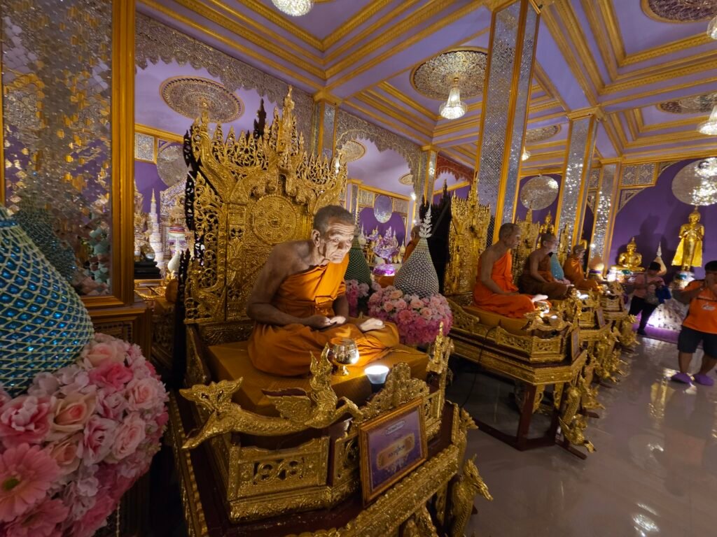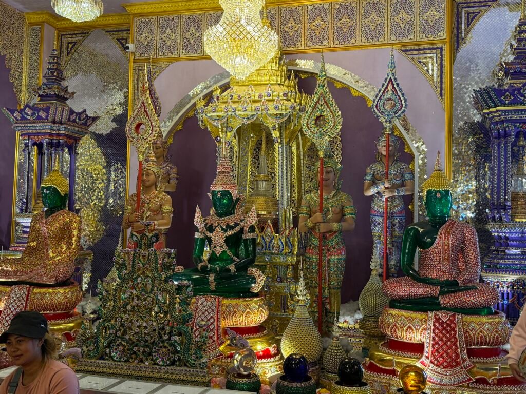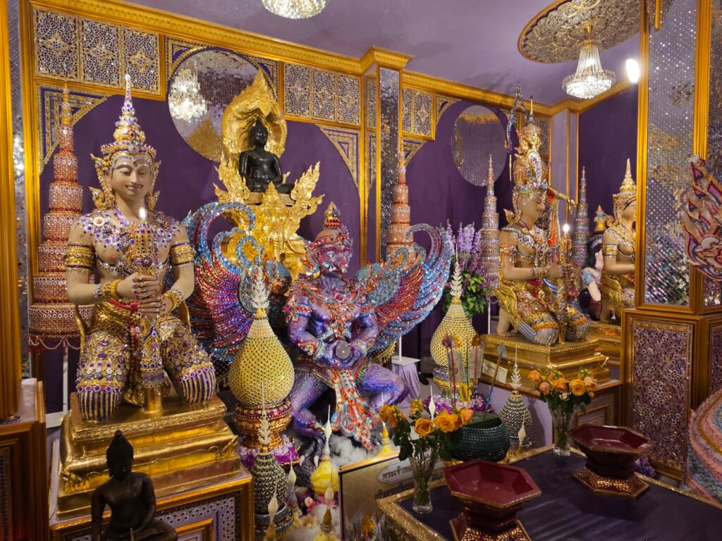 The purple temple is beautfiul and the girls got blessed by a monk.