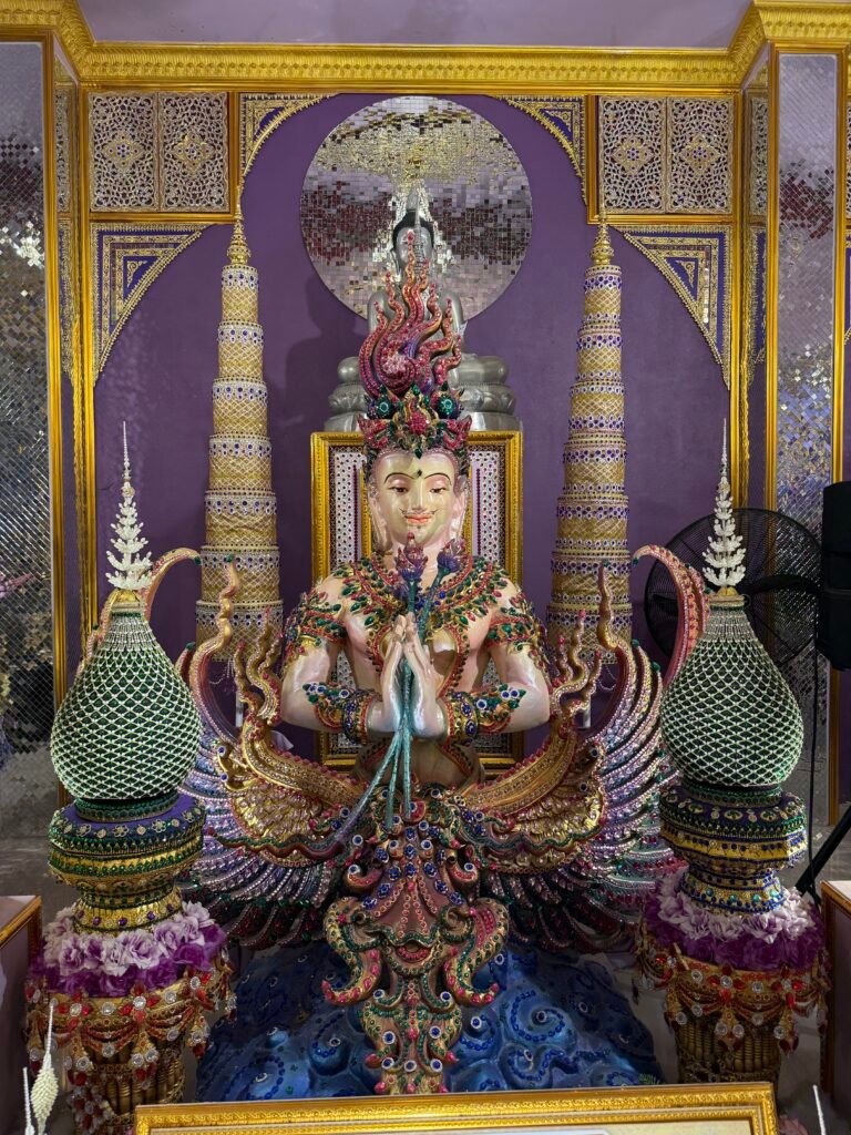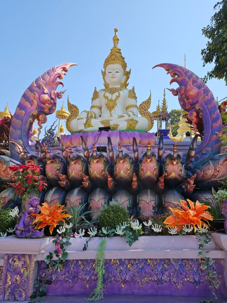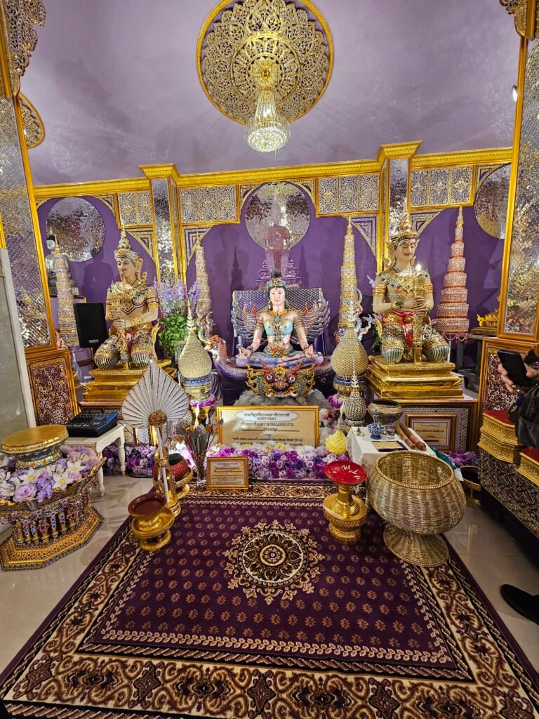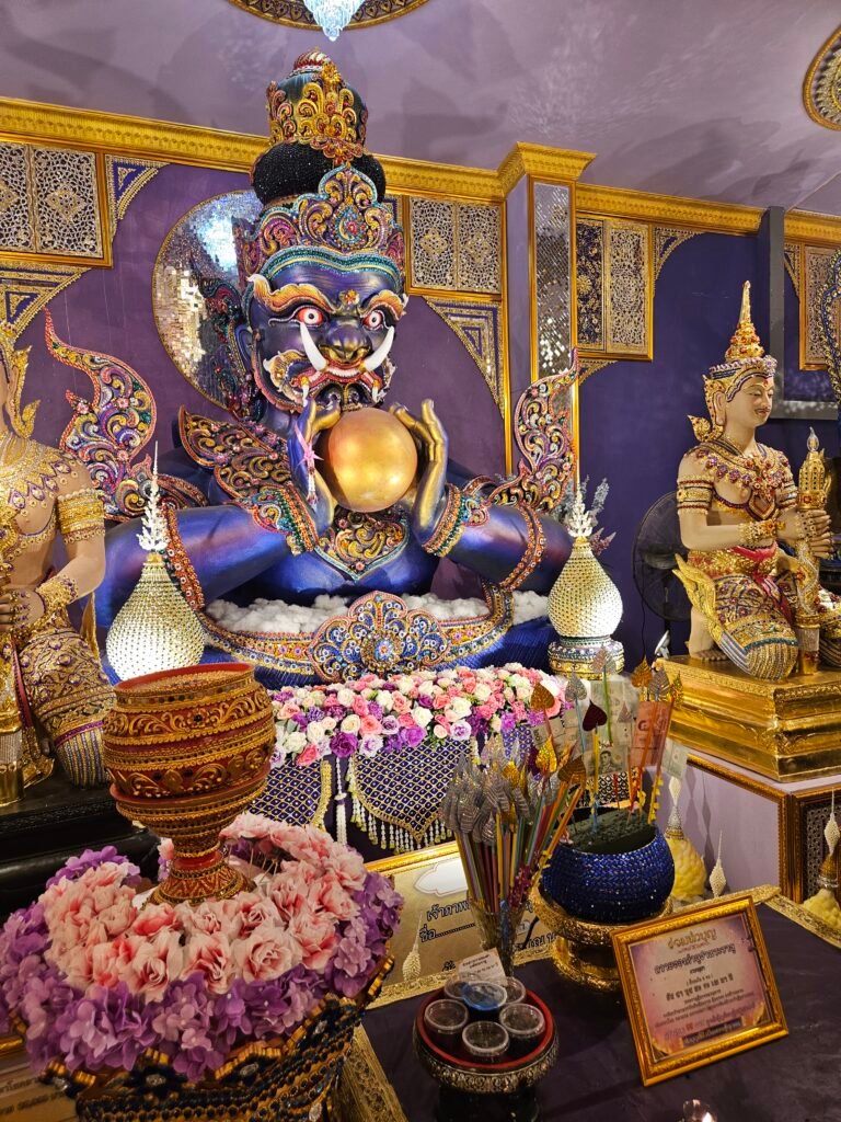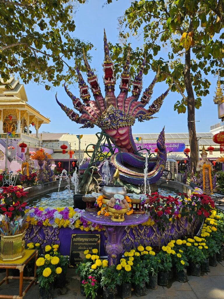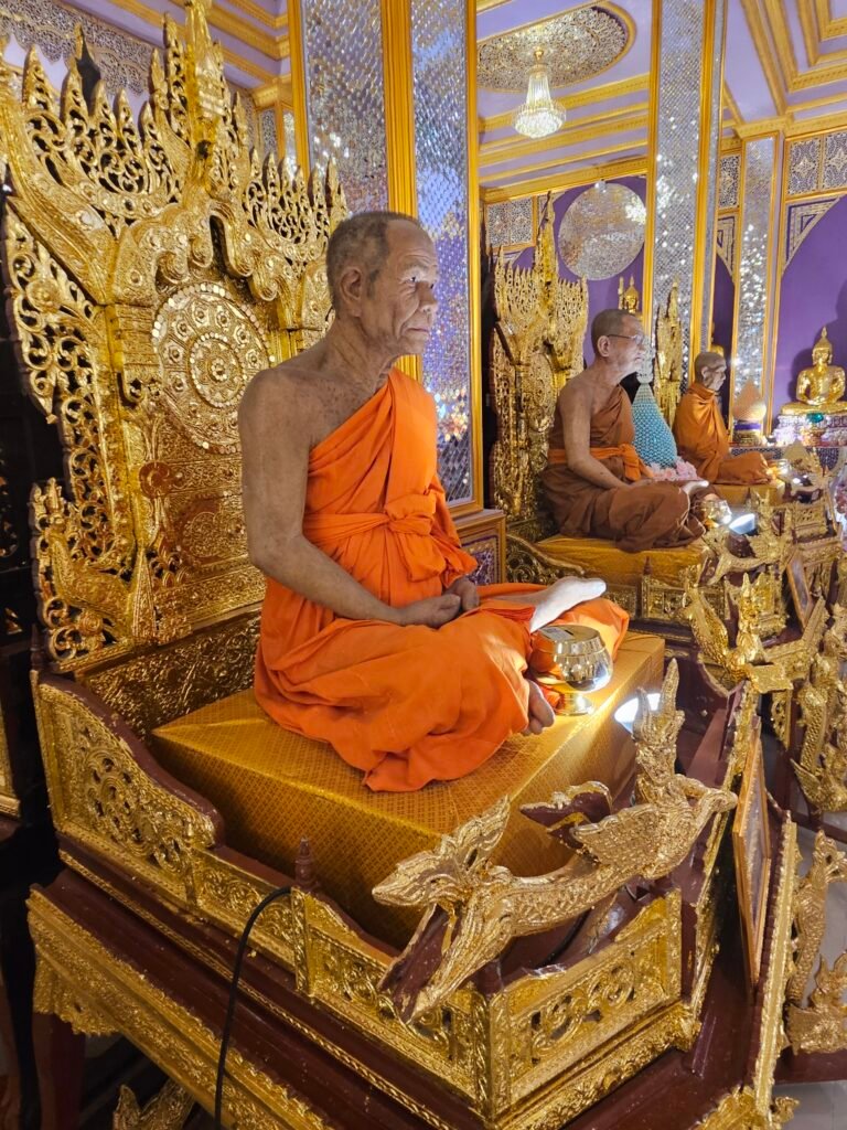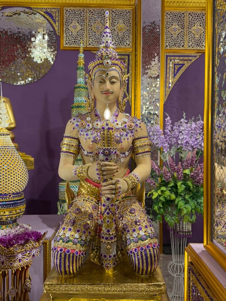 The purple temple is beautfiul and the girls got blessed by a monk.