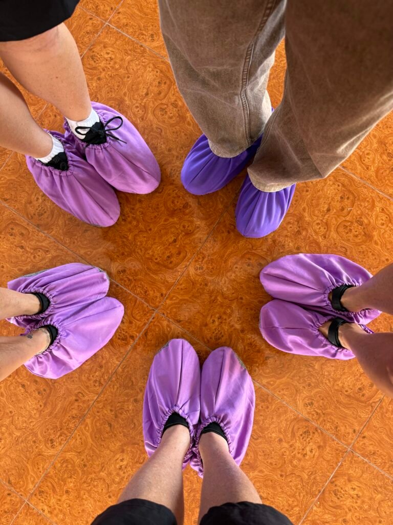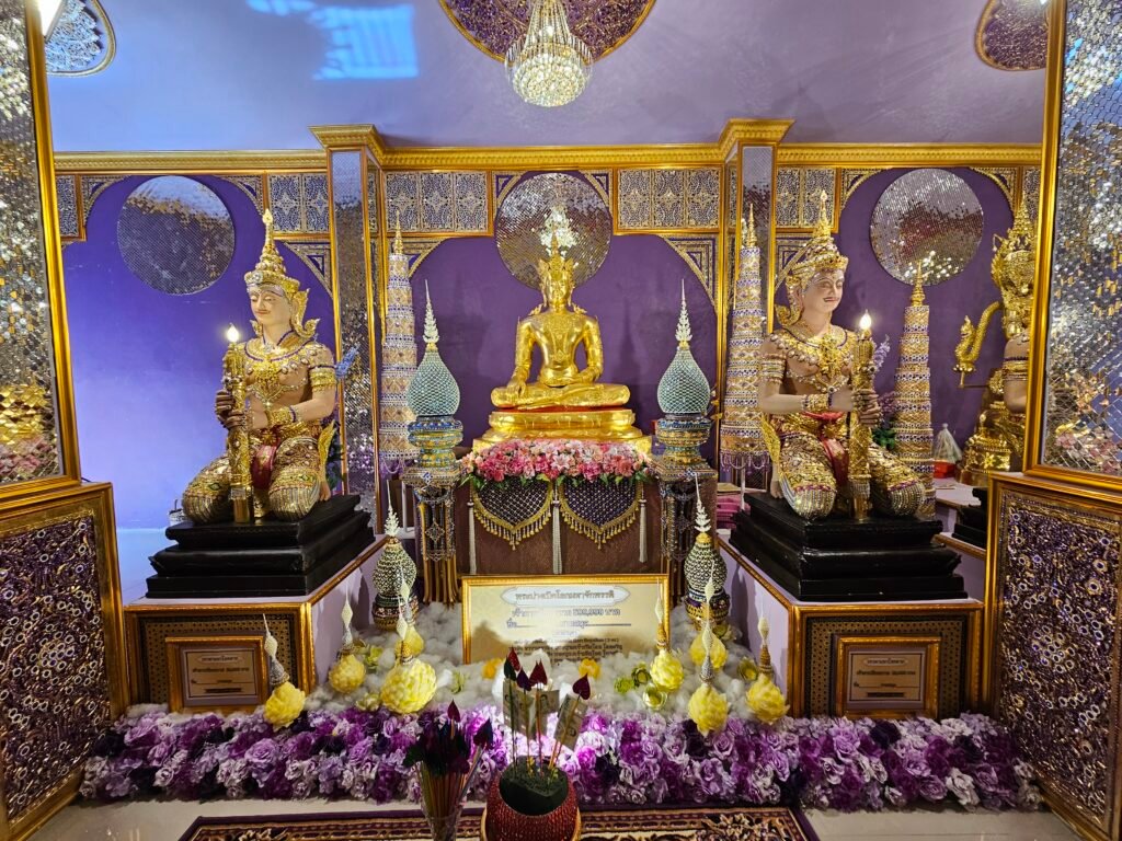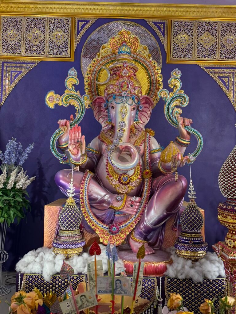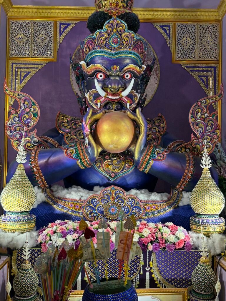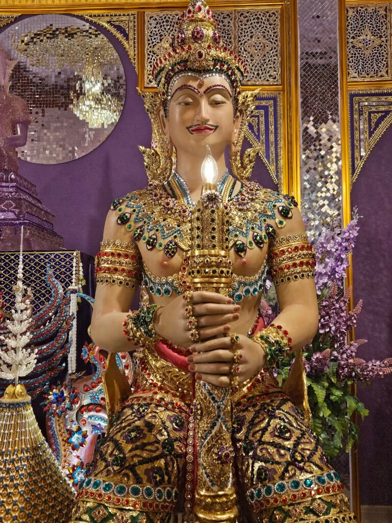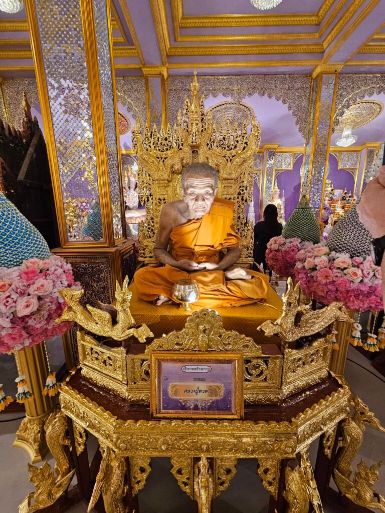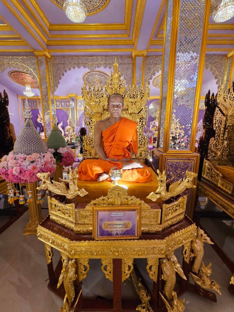 The purple temple is beautfiul and the girls got blessed by a monk.