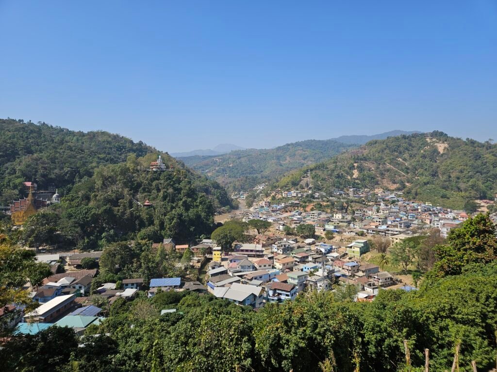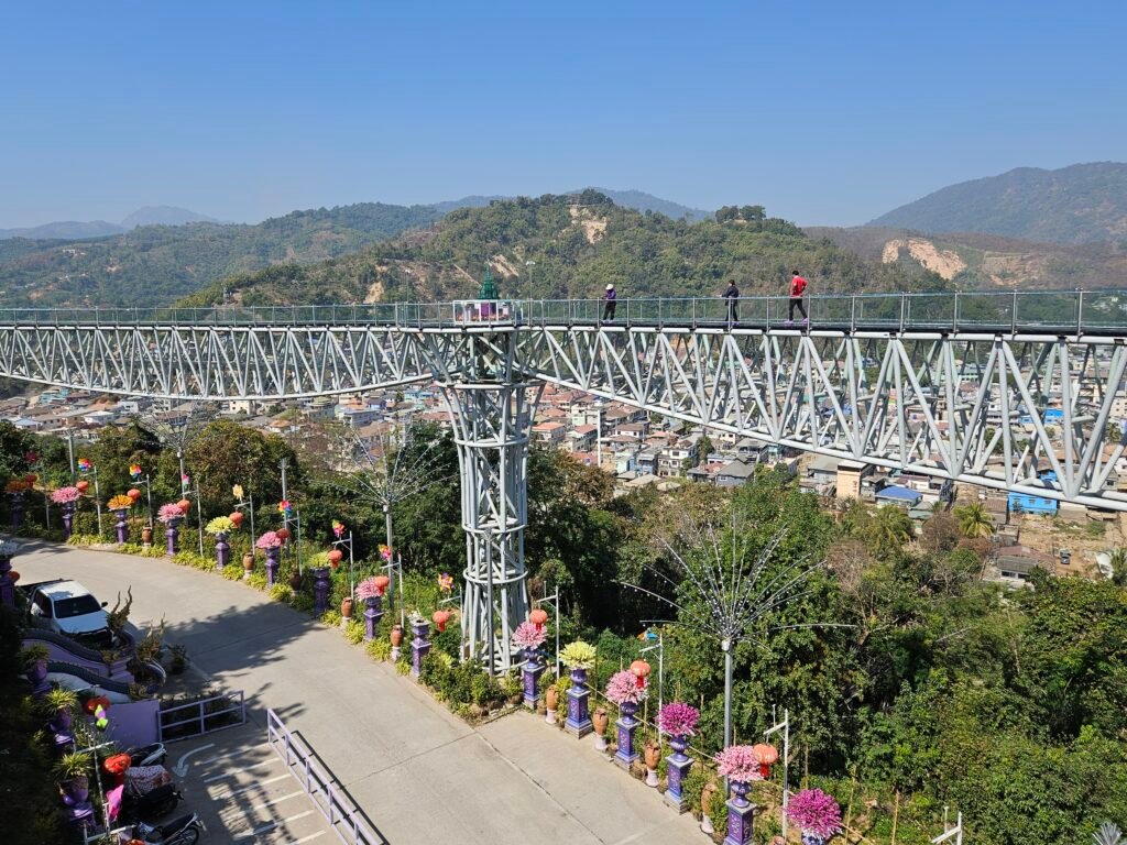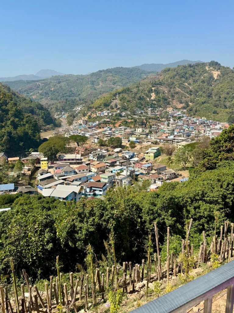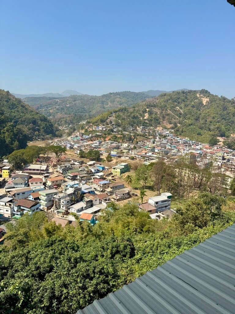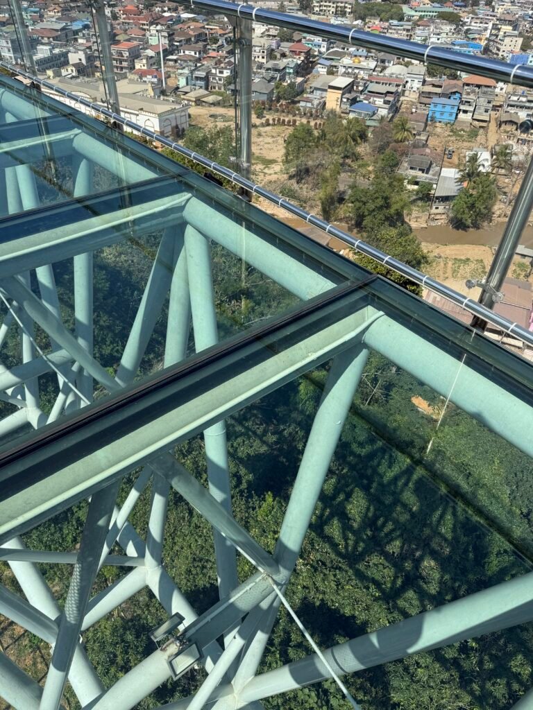 One of the best ways to see the Golden Triangle is a trip to the Skywalk. It is more than a bit scary, but the area before the skywalk is built up and there is a beautiful purple temple after the skywalk. They keep the skywalk so clean, you have to wear purple shoe covers. It reminds me over the Grand Canyon West overlook. Skywalk Mae Sai Border, between Thailand and Myanmar.
