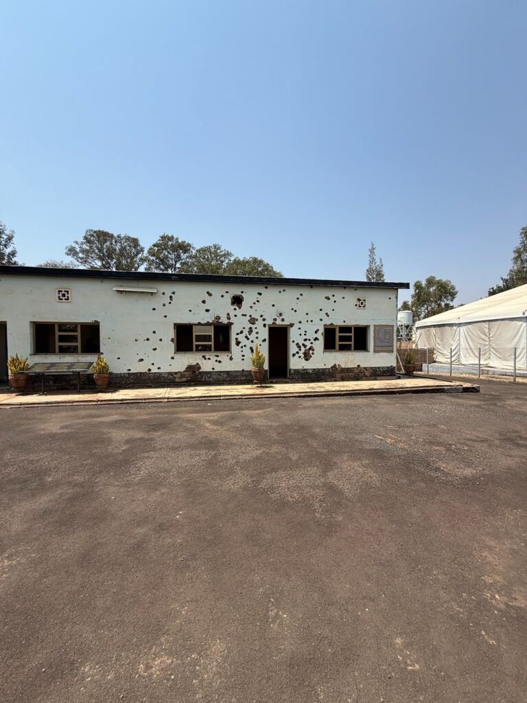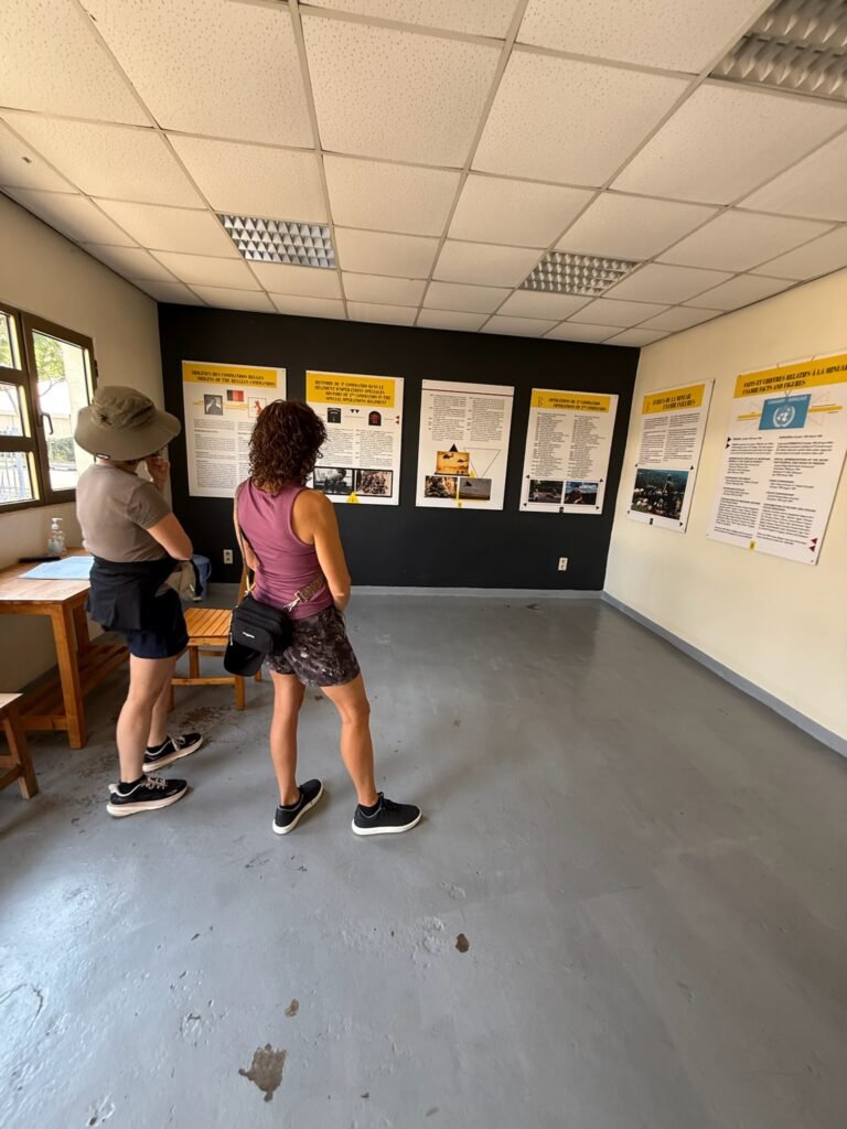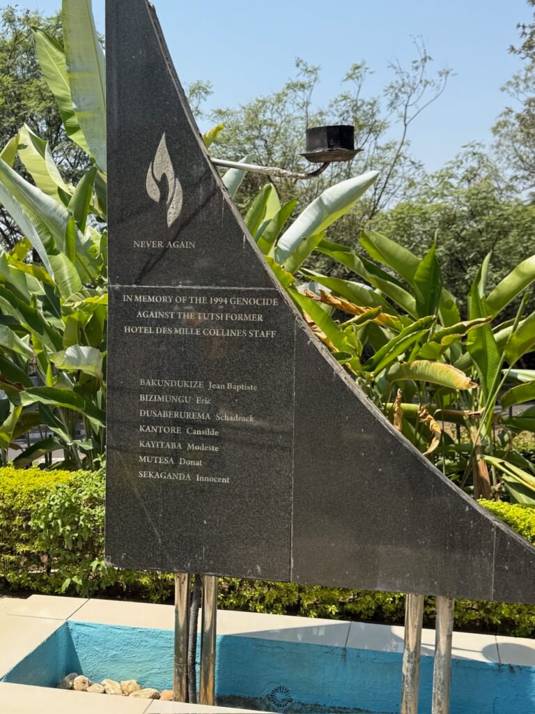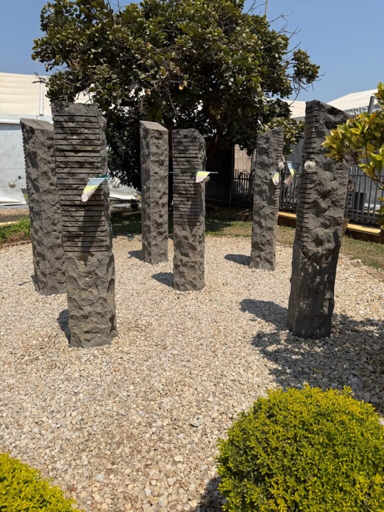 The 10 Belgian soldiers were part of the UNAMIR (United Nations Assistance Mission for Rwanda) peacekeeping mission. They were assigned to protect Rwanda’s Prime Minister, Agathe Uwilingiyimana. After the assassination of President Habyarimana, violence erupted, and the soldiers were captured and killed by the Rwandan Presidential Guard. The 10 stone pillars, each with horizontal cuts representing the age of each soldier.