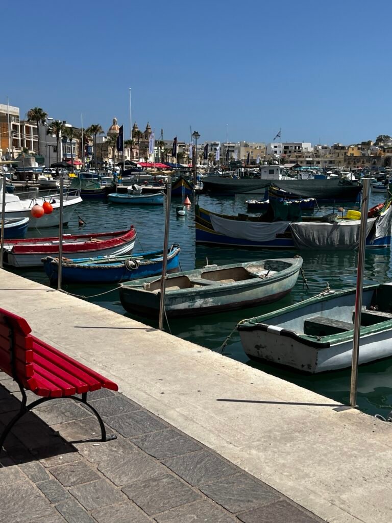 Marsaxlokk The picturesque waterfront lined with colorful boats is a perfect place for a leisurely stroll. The promenade has numerous cafes and restaurants where you can enjoy fresh seafood dishes and traditional Maltese cuisine.