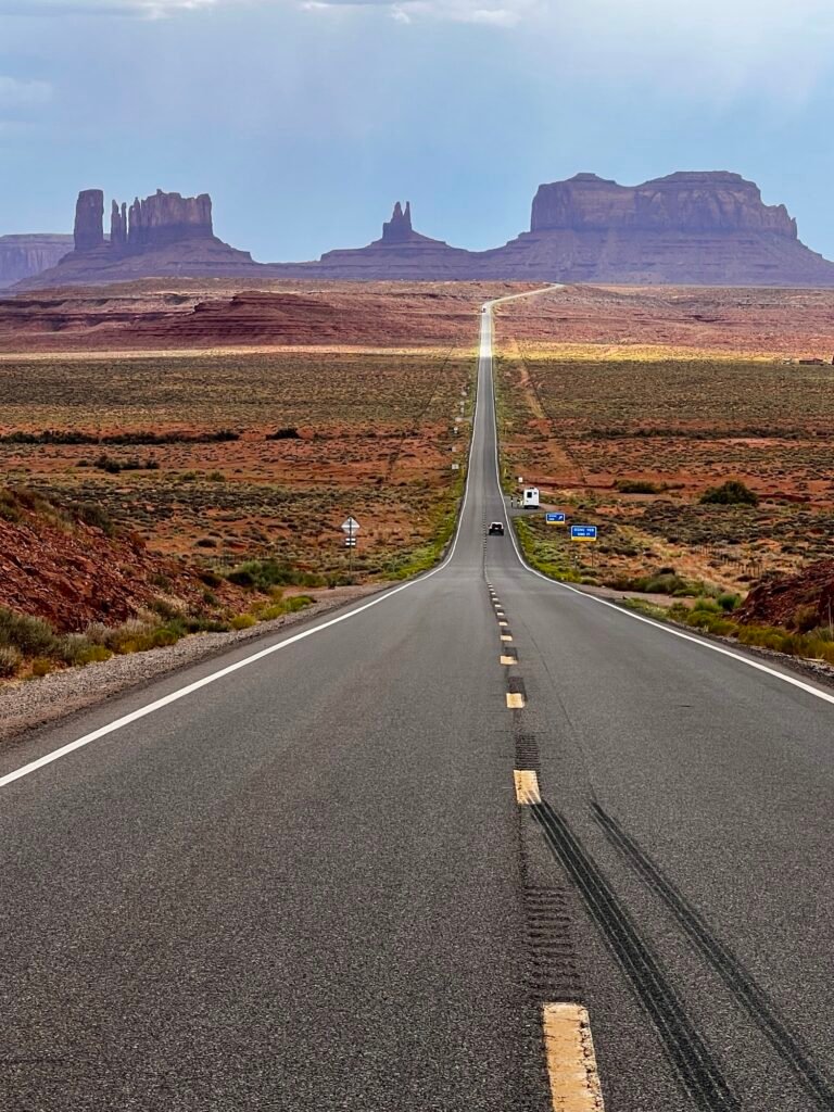 Forrest Gump Point is a renowned viewpoint located along U.S. Route 163 in Monument Valley, Utah, which gained fame from the 1994 film “Forrest Gump.” We got lucky and go the pictures below with no other cars.