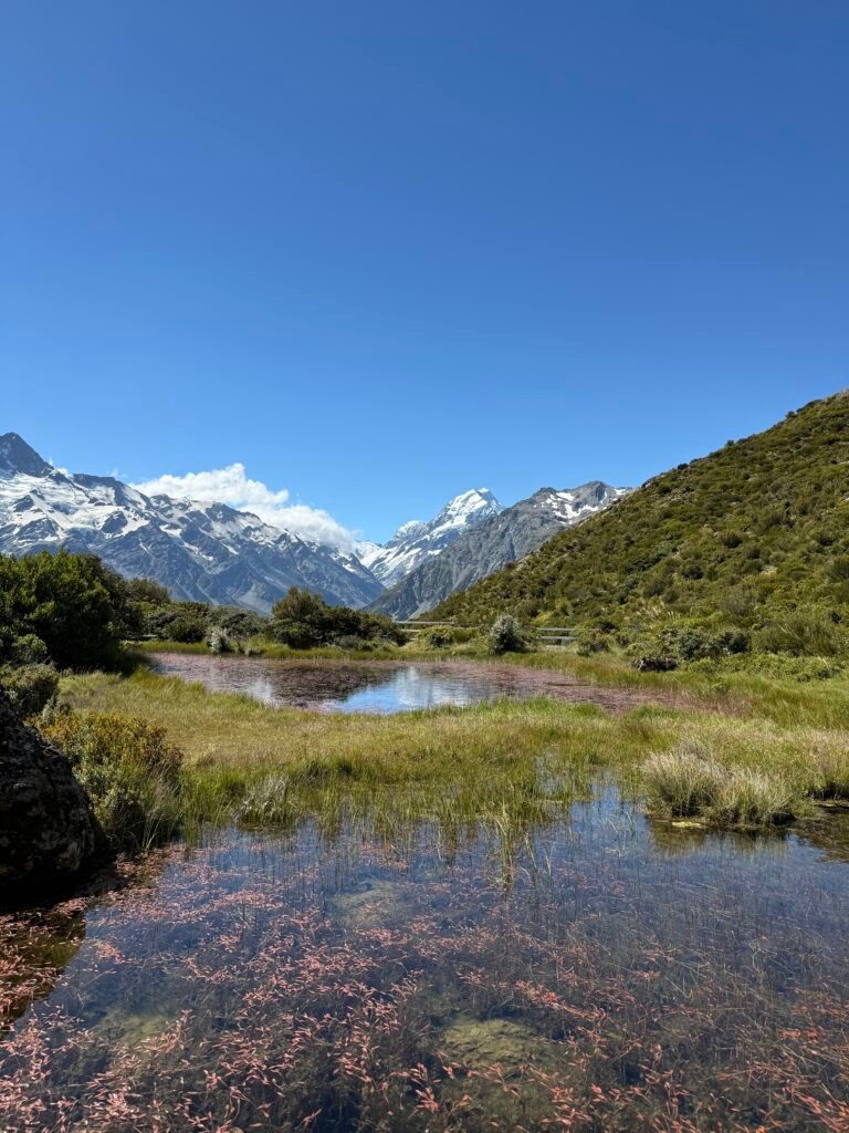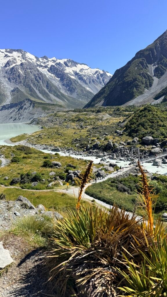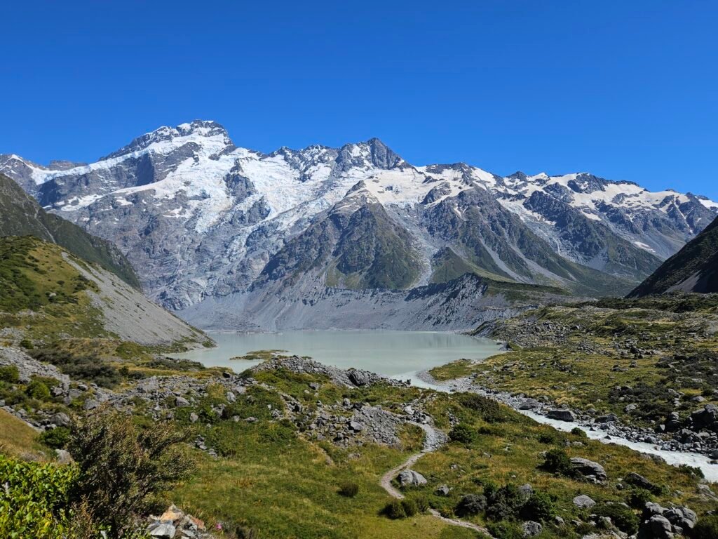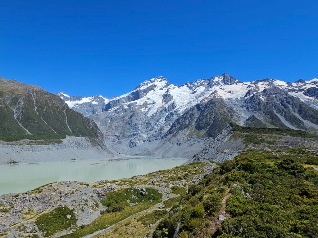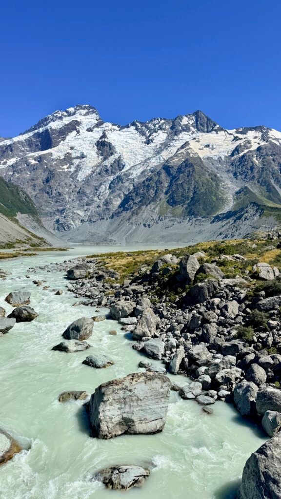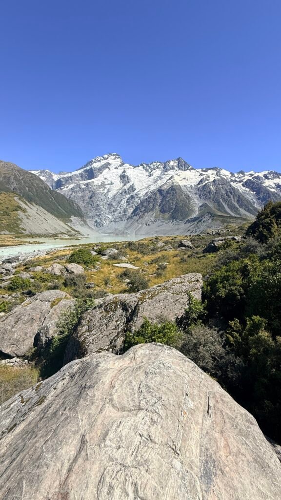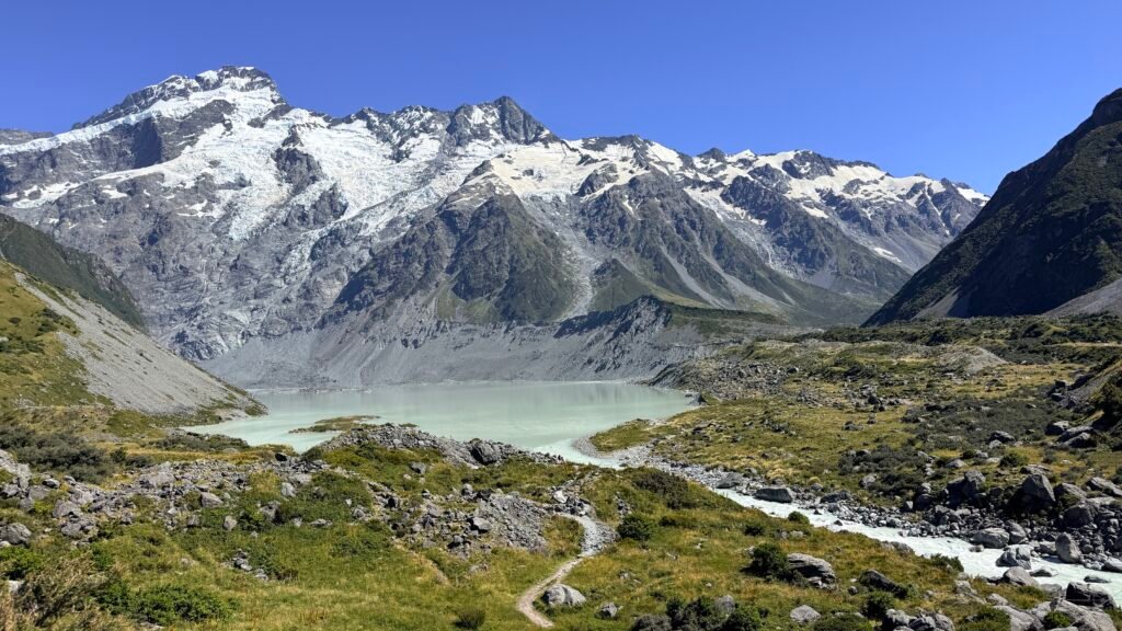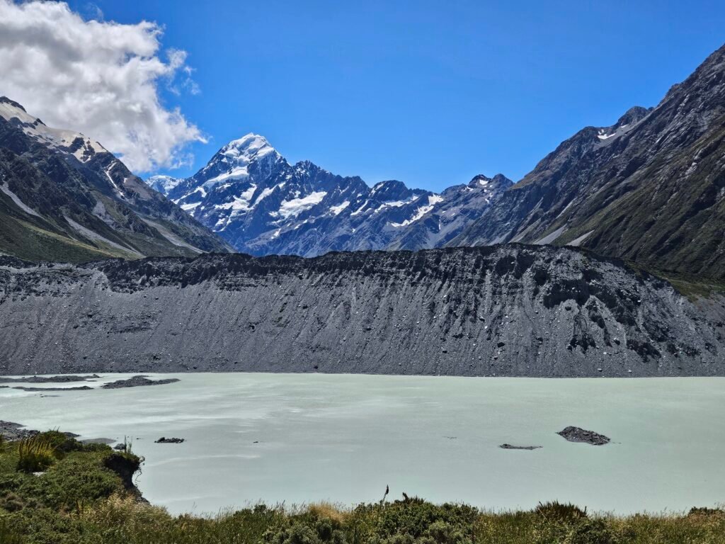New Zealand’s highest mountain (3,724 m / 12,218 ft) sits in the heart of the Southern Alps and is the centerpiece of Aoraki / Mount Cook National Park. It’s one of the most dramatic alpine landscapes in the country — glaciers, turquoise lakes, and easy-access hikes with huge views.