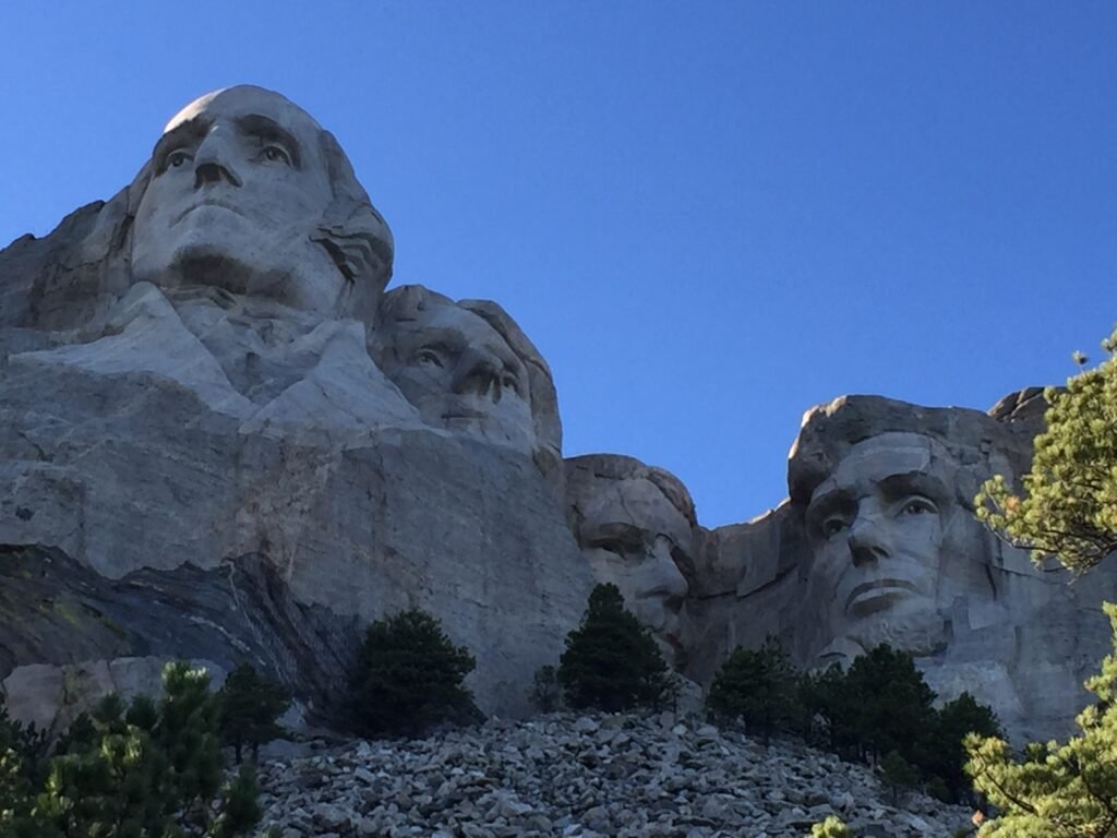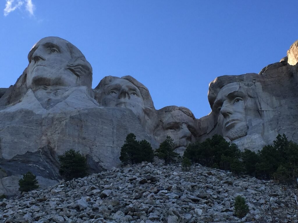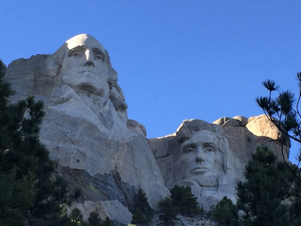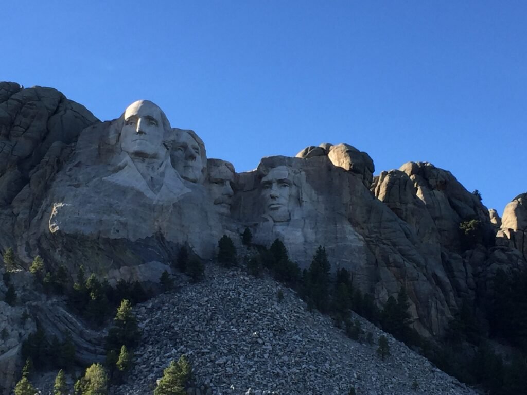 Mount Rushmore National Memorial, located in the Black Hills of South Dakota, is one of the most iconic landmarks in the United States. The memorial features the colossal faces of four U.S. Presidents carved into the granite face of Mount Rushmore.