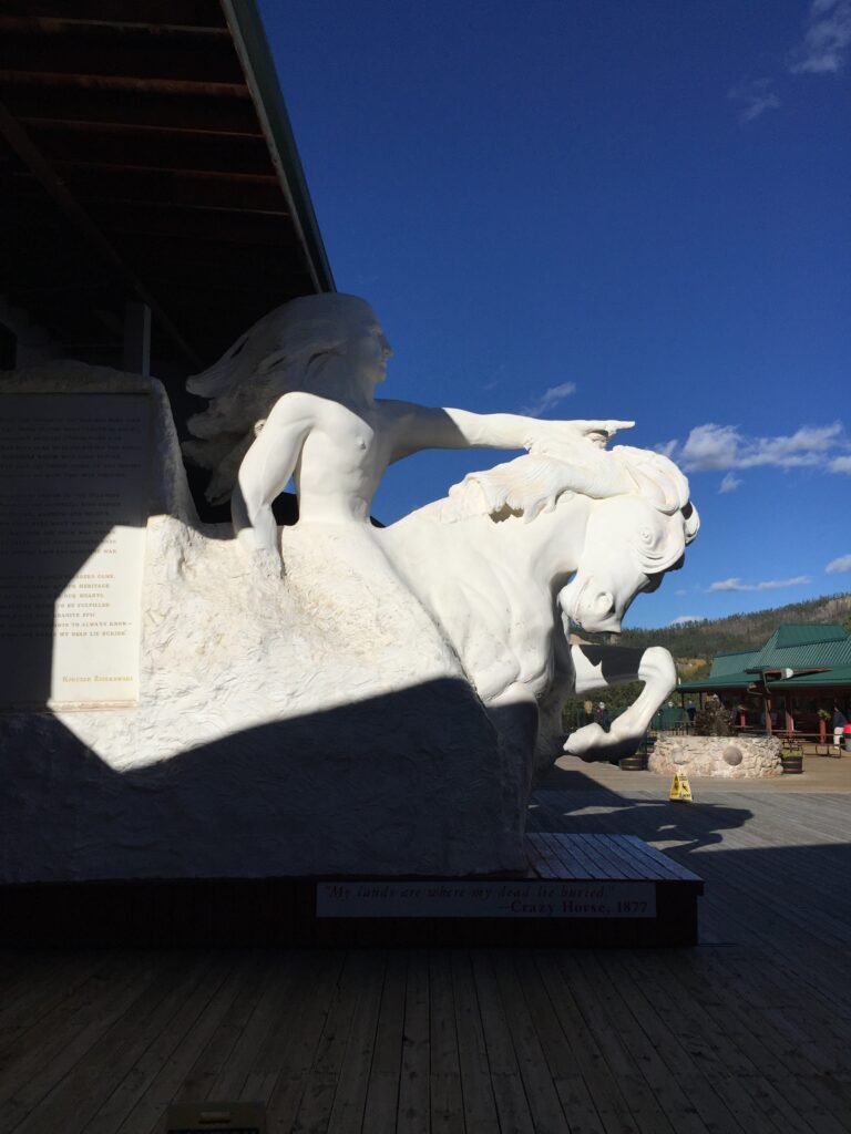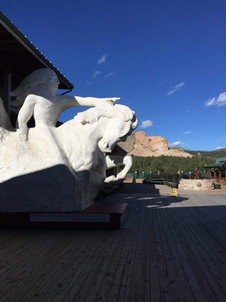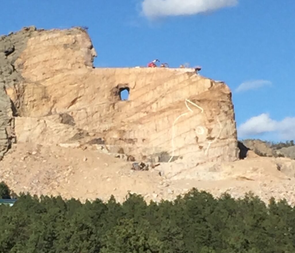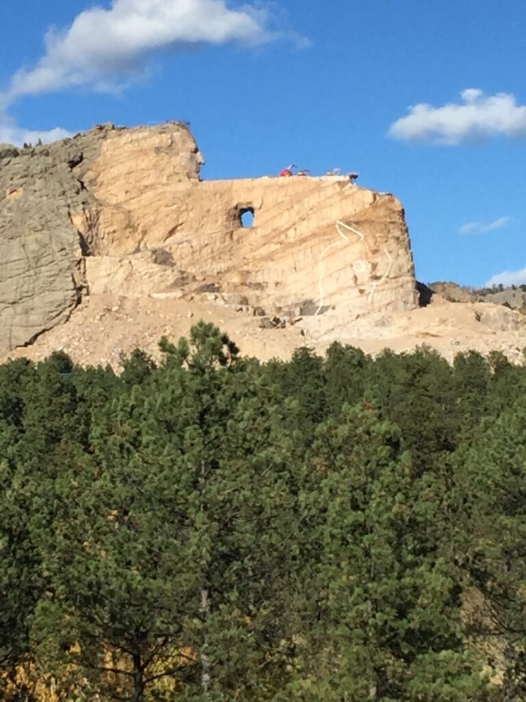 The Crazy Horse Memorial, located in the Black Hills of South Dakota, is a monumental sculpture dedicated to the Lakota leader Crazy Horse. It is an ongoing project and is notable for its impressive scale and cultural significance. The sculpture, when completed, will depict Crazy Horse riding a horse and pointing into the distance. The face of the statue is already complete, and it stands at 87 feet high.The full sculpture will be much larger than Mount Rushmore, with Crazy Horse’s head alone being 60 feet high and his outstretched arm reaching 40 feet. When completed it will be the largest sculpture in the world.