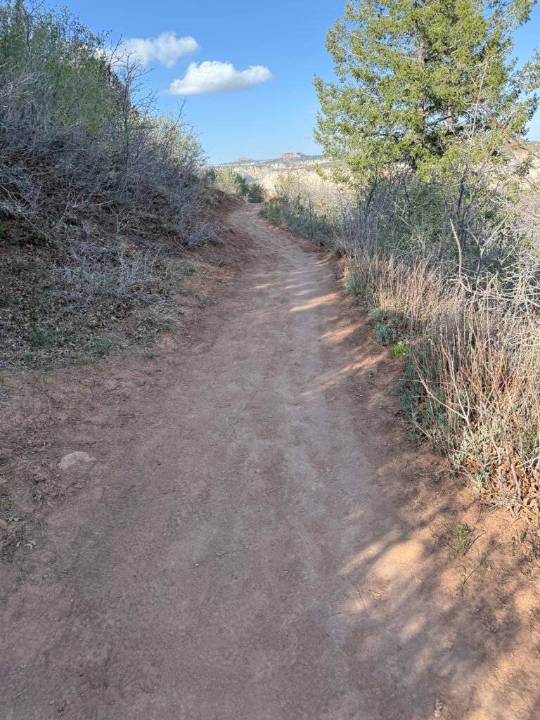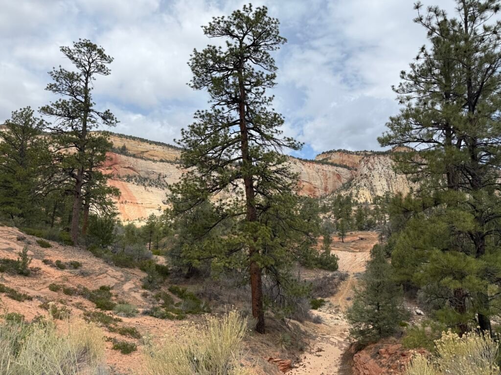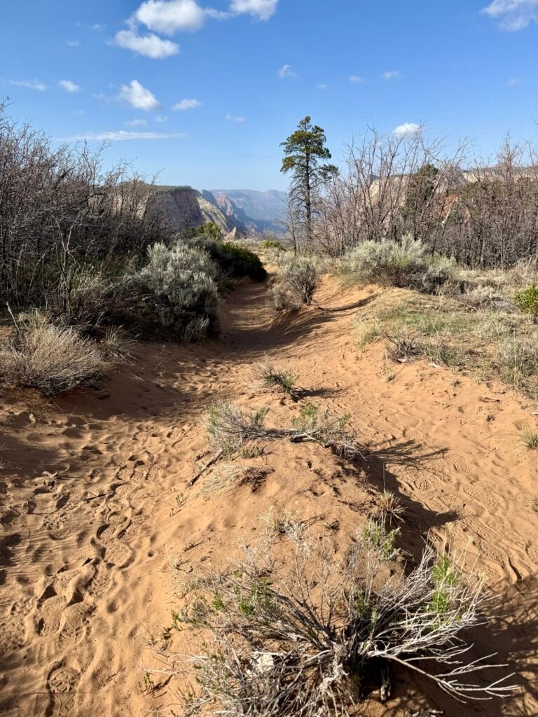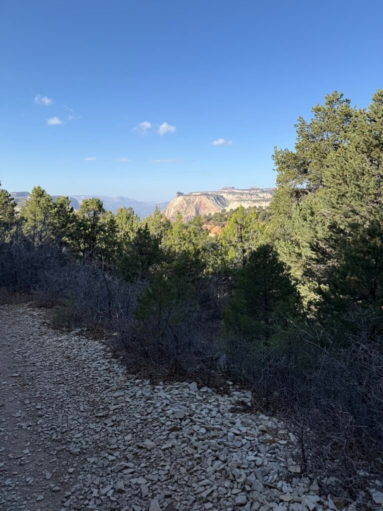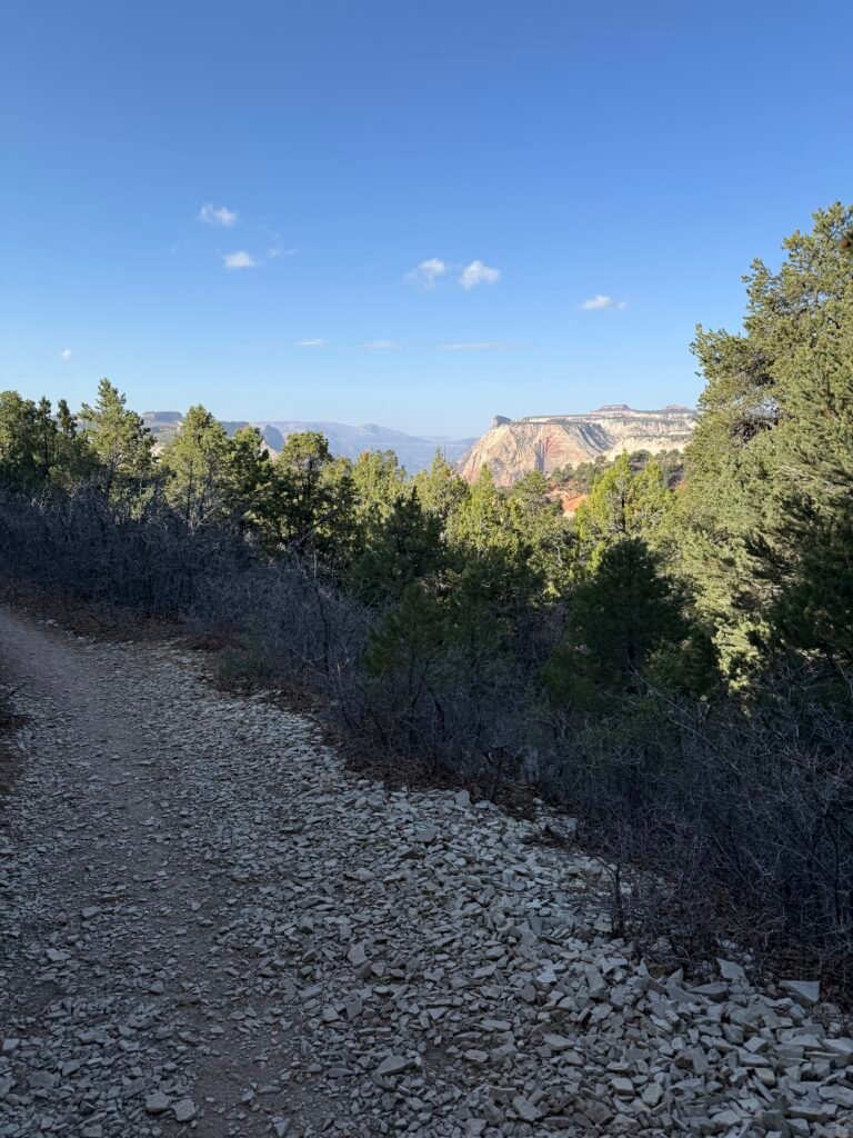 To get here, you take the East Mesa Trail (due to rockfall on the original Weeping Rock Trail). To get to the East Mesa Trail, use directions to the Zion Ponderosa Lodge. From there, you can take the hotel shuttle to the trailhead or if you go early enough, you can find parking. The trailhead is a few miles over a bumpy dirt road from the lodge.