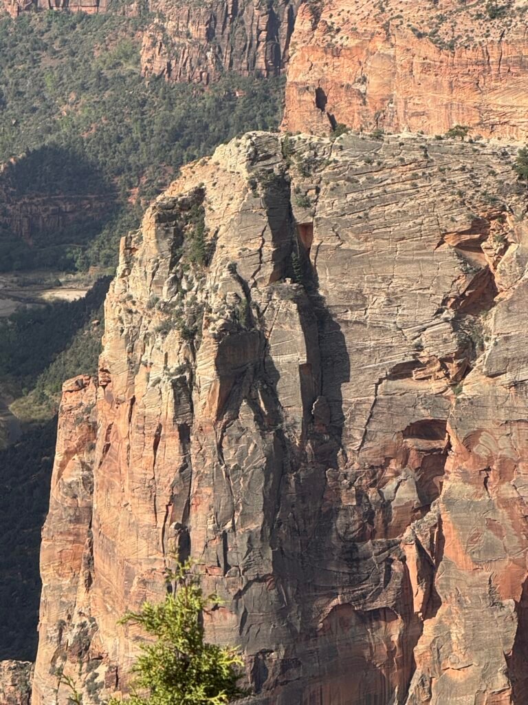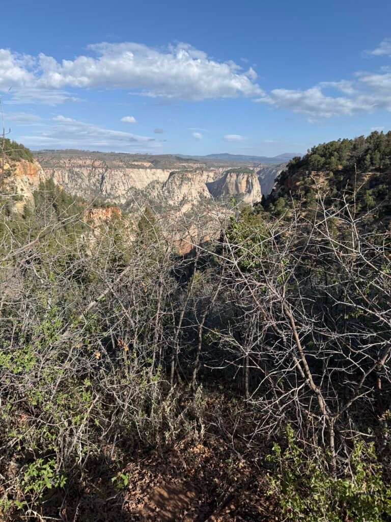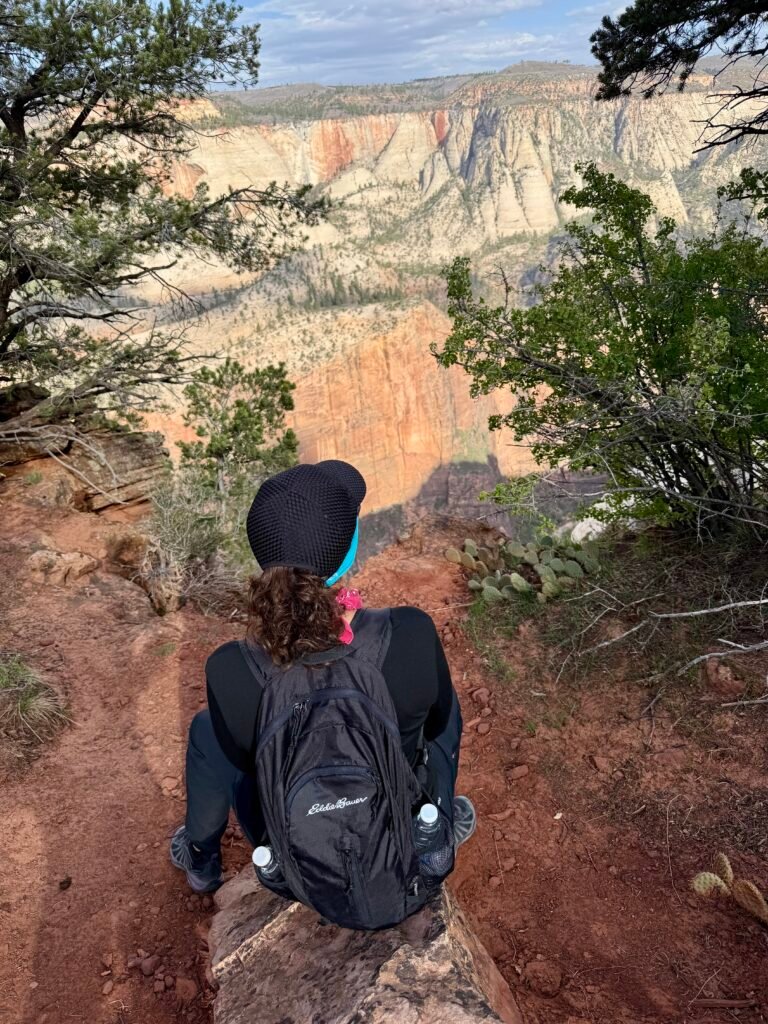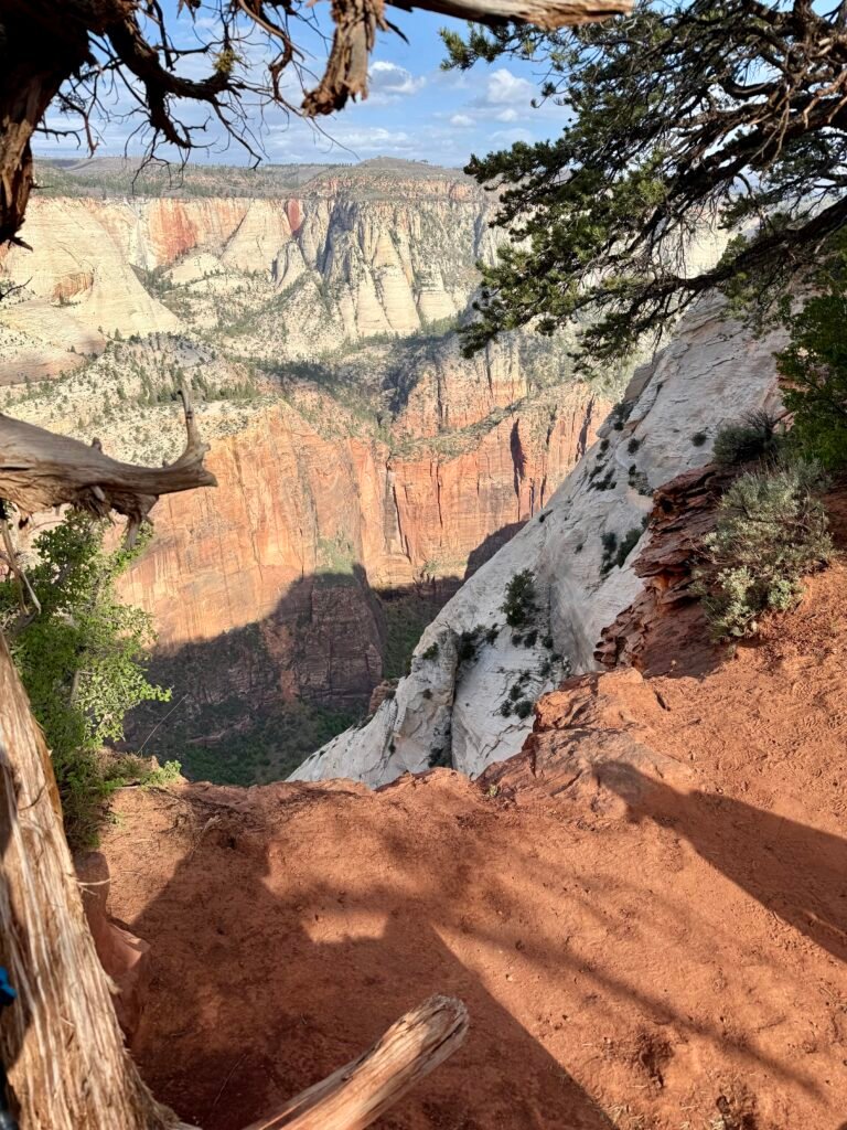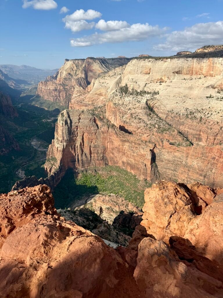The view is certainly one of the best in the park. It overlooks Angels Landing, the Virgin River, and much of Zion Canyon.