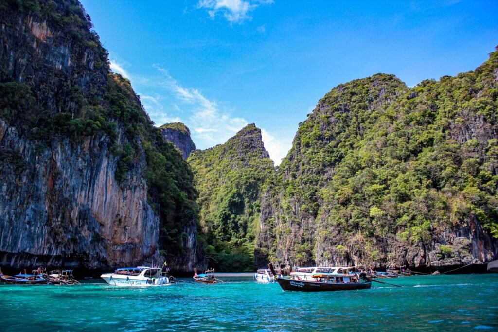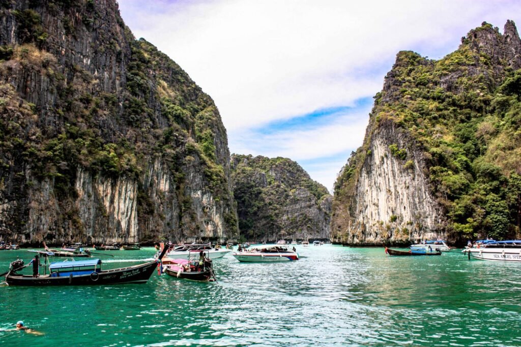The Phi Phi Islands are a famous group of islands in Thailand, located in the Andaman Sea, known for their stunning beauty. The islands are part of the Phi Phi Islands National Park, and they’re located about 45 minutes by boat from the mainland town of Krabi or Phuket.