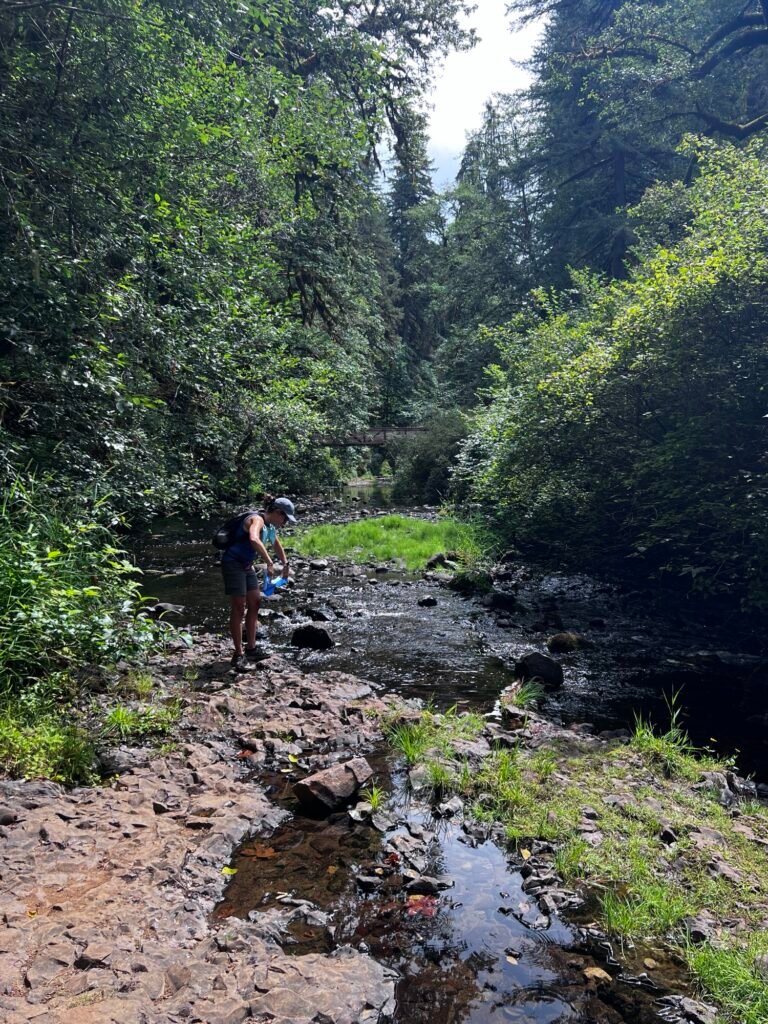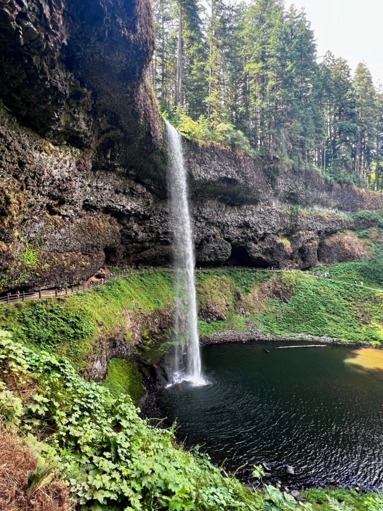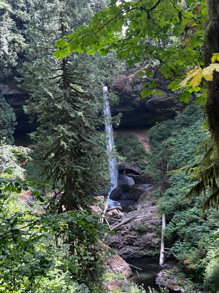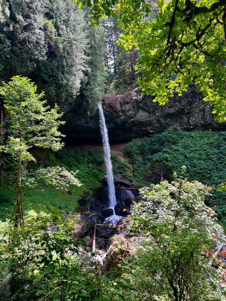 Silver Falls State Park, located in the Willamette Valley of Oregon, is renowned for its stunning collection of waterfalls and lush forest scenery. It’s a great destination for hiking, photography, and nature exploration. We visited on a busy Saturday and the parking lots were almost full at 11a. There is a $5 permit fee to park and once we found a spot, we packed up and started to the Trail of Ten Falls.