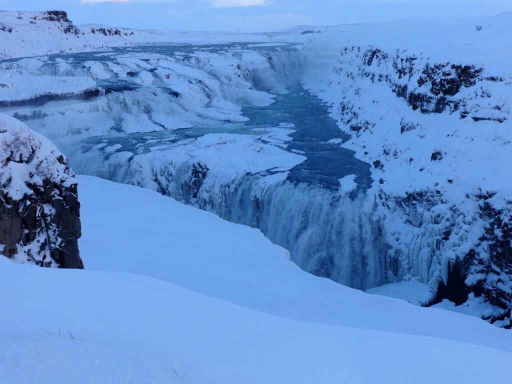 Gullfoss Waterfall: A powerful and stunning waterfall that cascades in two stages into a rugged canyon.