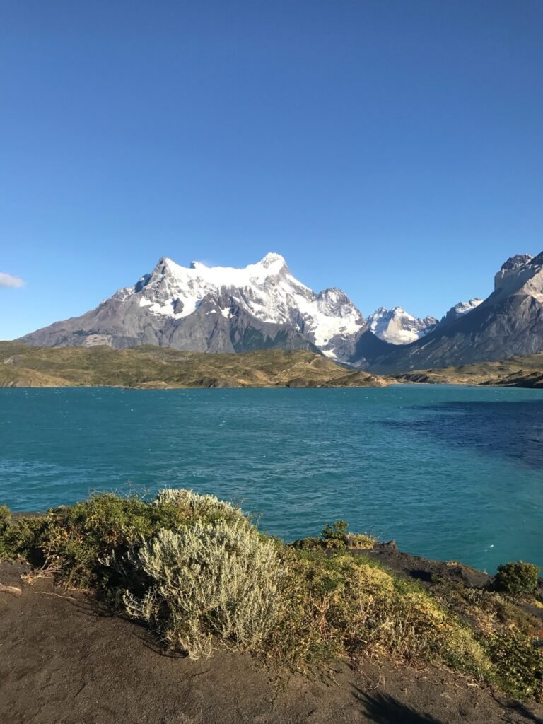 Our hotel, the Hosteria Pehoe had some of the most spectacular views in the park. We ate breakfast and dinner looking at the peaks and each evening had a bottle of wine. We could not get enough of this view.