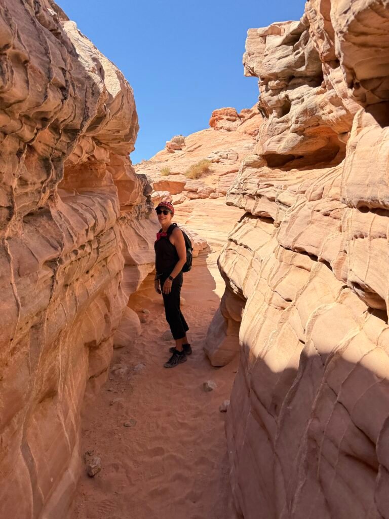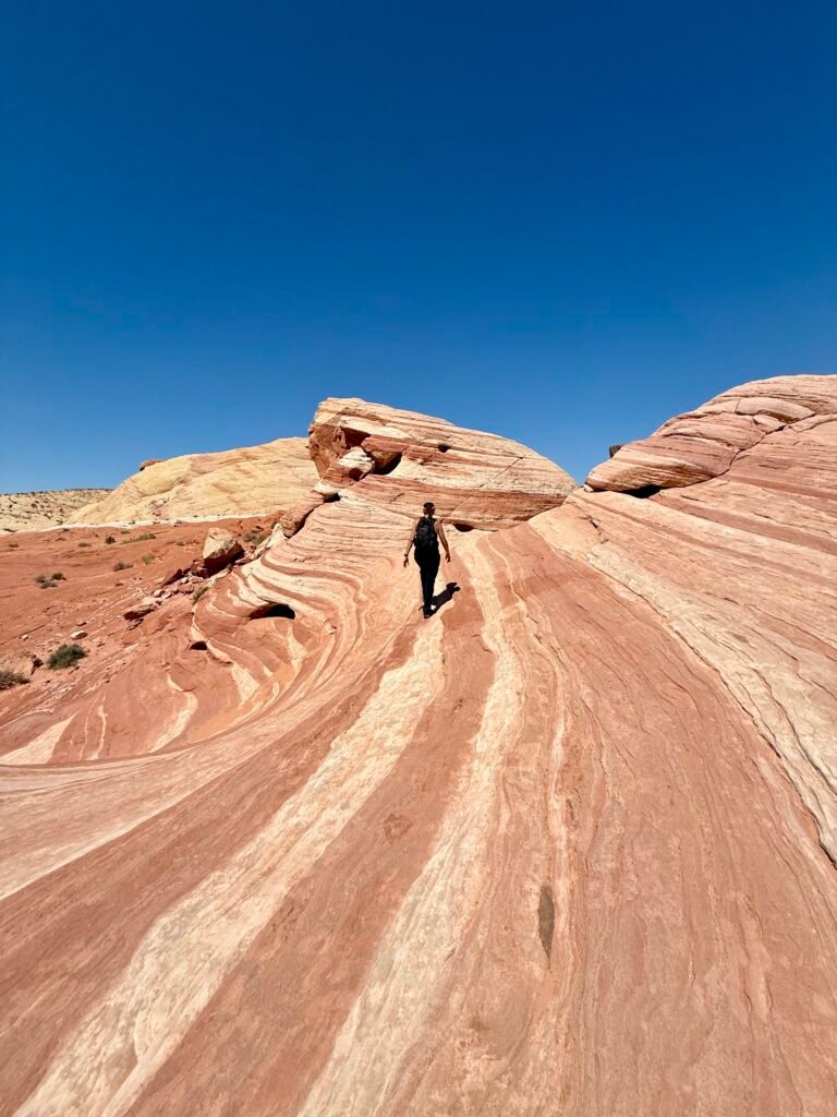 We did an awesome hike here but beware, it can get very hot. We hiked the Fire Wave, White Domes and Seven Wonders Loop. Almost 4 miles, not a huge elevation gain, but lots to be careful with on the rocks.