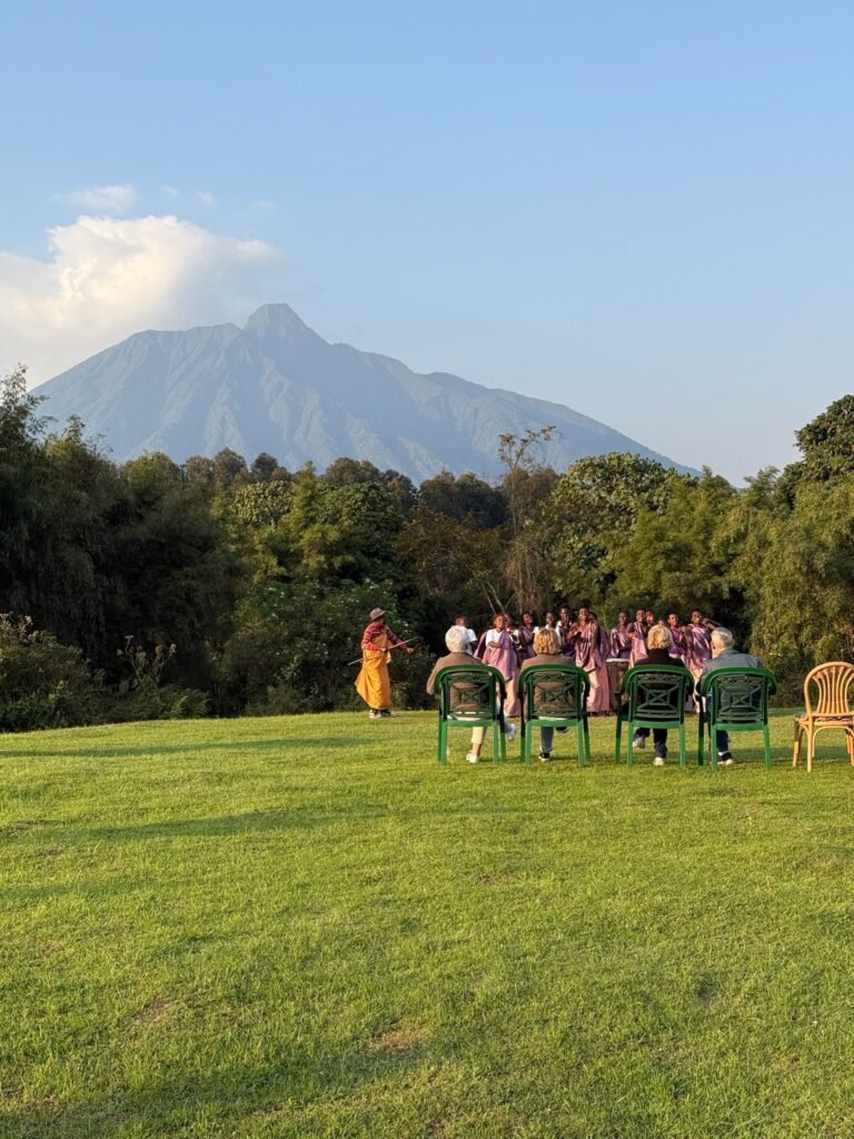 We stayed at the Mountain Gorilla Lodge and like many hotels here, we were greeted by song and dance.