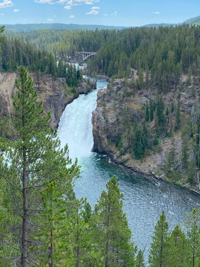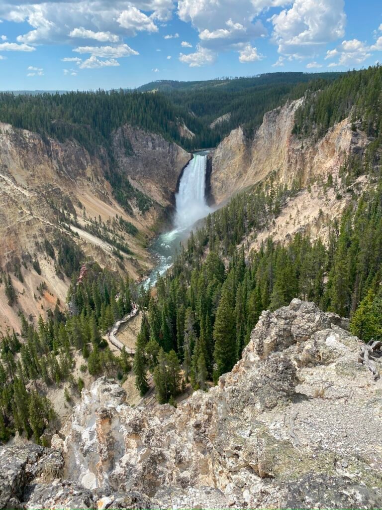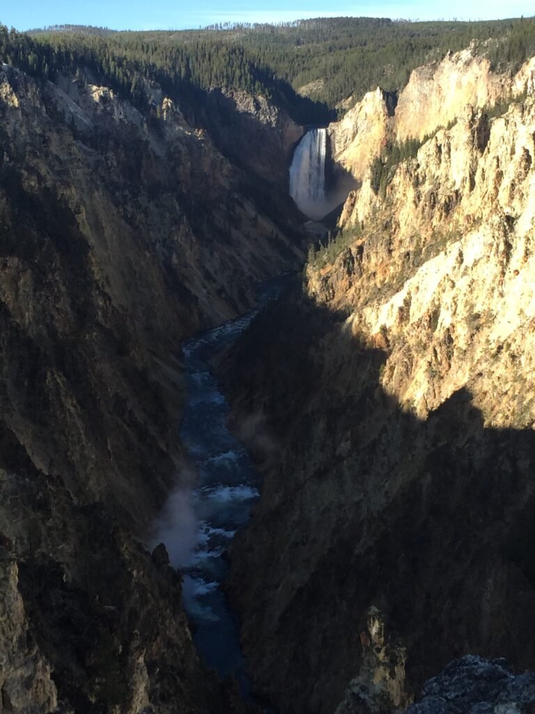 Grand Canyon of the Yellowstone is a dramatic canyon carved by the Yellowstone River with stunning waterfalls and colorful rock formations. There are two waterfalls there, the upper and lower falls with a great trail called Uncle Tom’s Trail to view the lower falls.
