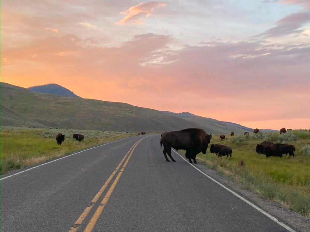 The Lamar Valley is a prime wildlife viewing area often referred to as the “Serengeti of North America.” The cars get there before sunrise to get a glimpse or more of the animals including, bears, wolves and buffalo.